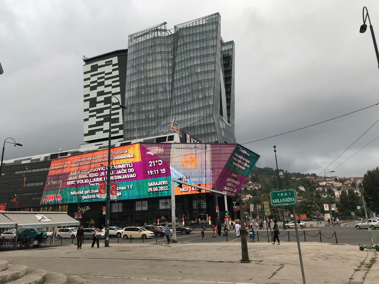 Une vingtaine de minutes de flânerie plus tard, on fait un bond au XXIe siècle en tombant sur un énorme centre commercial flambant neuf, le SCC – Sarajevo City Center.