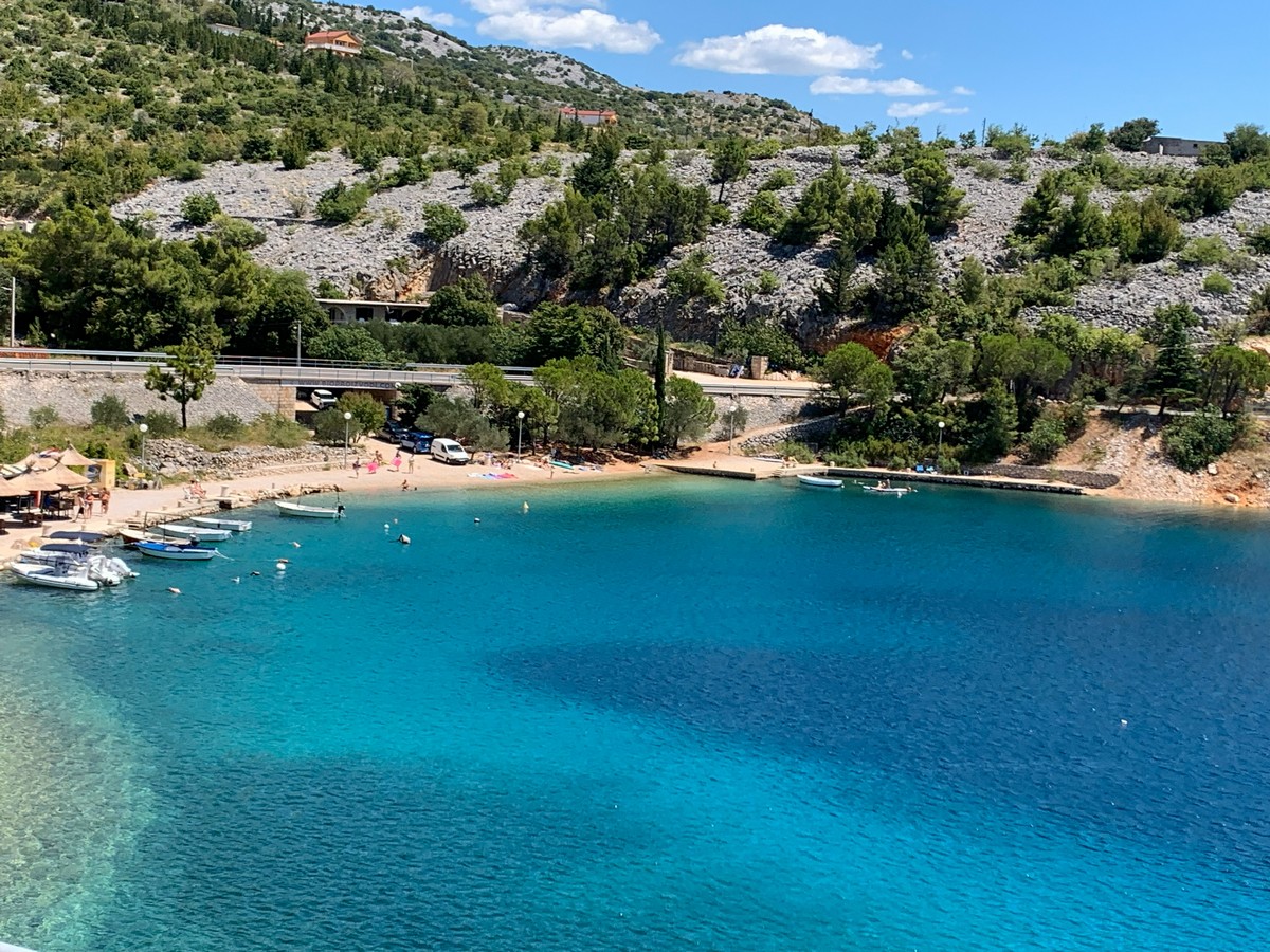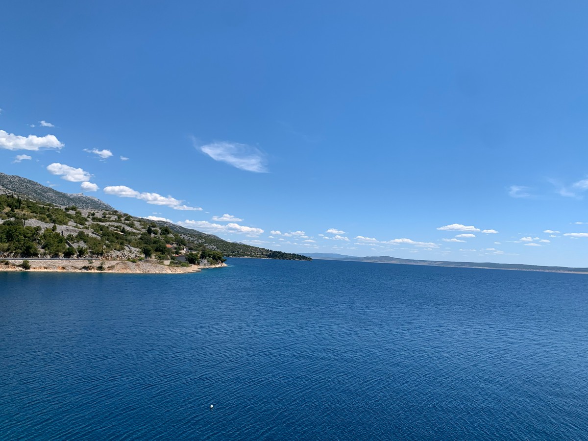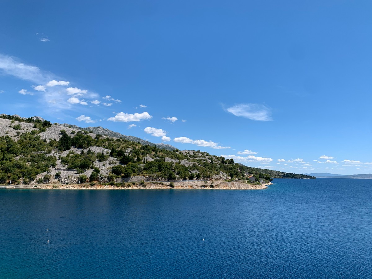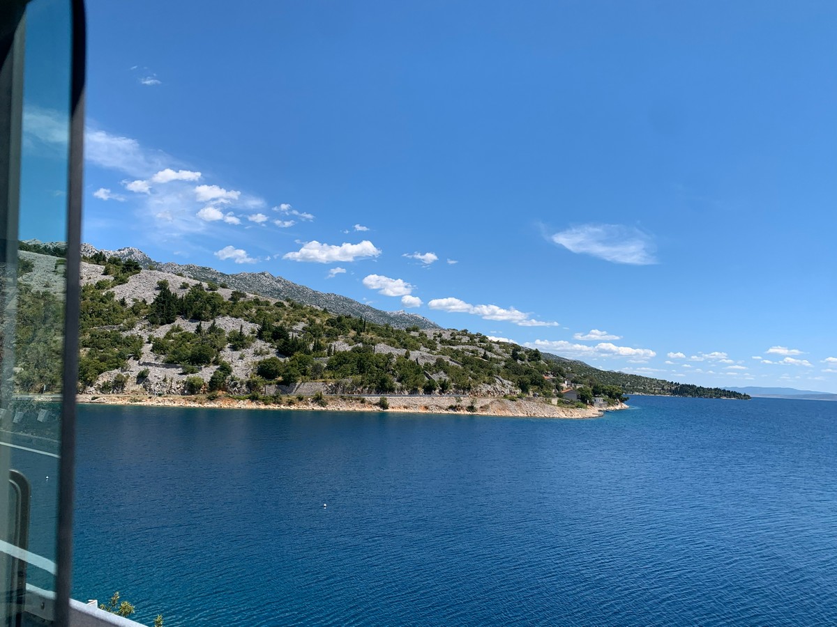 Départ de Senj à 11 heures. Ariane Max et Candice prennent l’autoroute pour Zadar et y faire du shopping. Papy et Mimi prennent la route de la côte toujours aussi somptueuse et splendide.