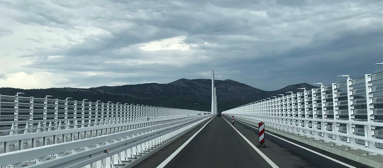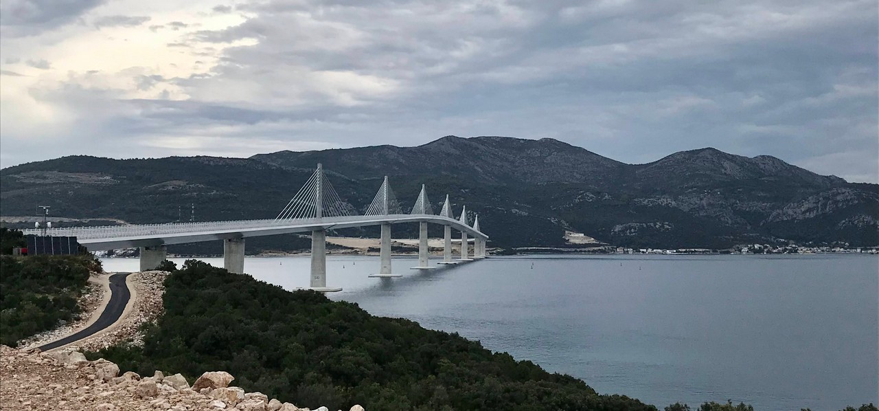Le temps se dégrade rapidement, arrêt avant le pont Peljeski.