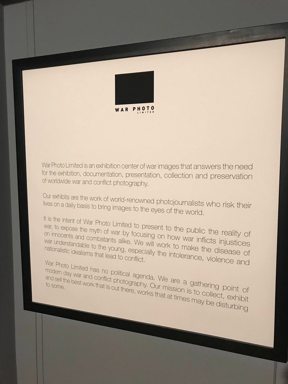 Il fait nuit, visite du WAR PHOTO LIMITED, où sont exposées des photos de correspondants de guerre sur le conflit yougoslave. Les tirages grand format sont à chaque fois contextualisés. On ne peut rester indifférent devant la cruauté de certaines images. On sort un peu sonné du musée.
