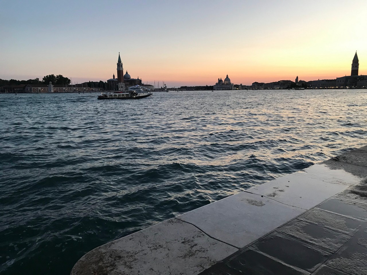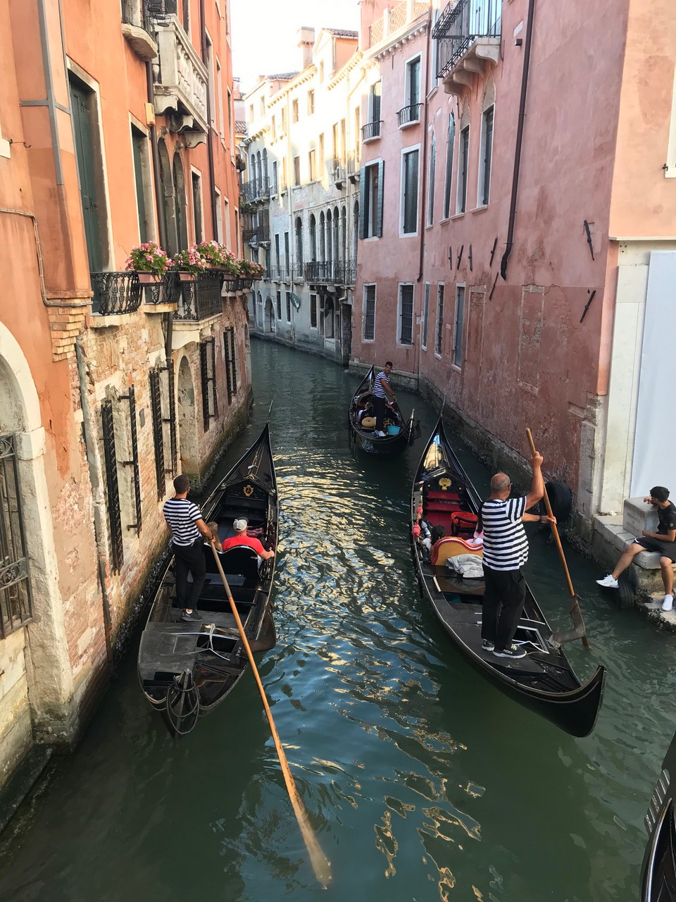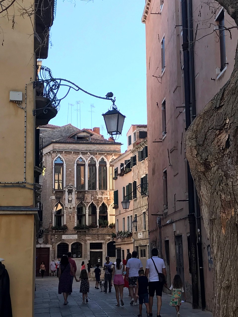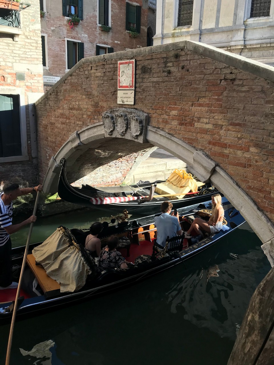 13 juillet. Début de nuit agitée à cause d’un groupe de jeunes qui campent tout près. Nous changeons d’emplacement ce matin et nous nous rapprochons du chenal. Bel emplacement où nous serons plus tranquilles. D’un coup on voit défiler un porte containers à quelques mètres à peine du bord du camping, c’est très impressionnant d’autant que cela se fait dans un silence relatif. Préparation de l’annexe (la voiture d’Ariane), direction Venise pour une première visite. Parking Piazzale Roma, au 10 ème étage pile poil à la verticale des carabiniers où nous étions venus, l’an dernier, quand Papy avait été « pickpocketé ». Tarif 35 € la journée , mais c’est Venise tout s’explique ! Visite du ghetto juif, que nous n’avions pas vu la dernière fois. Michel va même jusqu’à payer les glaces et des cappuccinos. Merci Tonton. Puis flânerie dans les quartiers nord, avant de revenir vers le centre. La canicule est bien installée et il fait chaud. En fin de journée nous dînons au restaurant (service assuré par des Pakistanais), rien d’inoubliable si ce n’est le tarif. Retour au parking à pied. Voiture, camping, dodo.