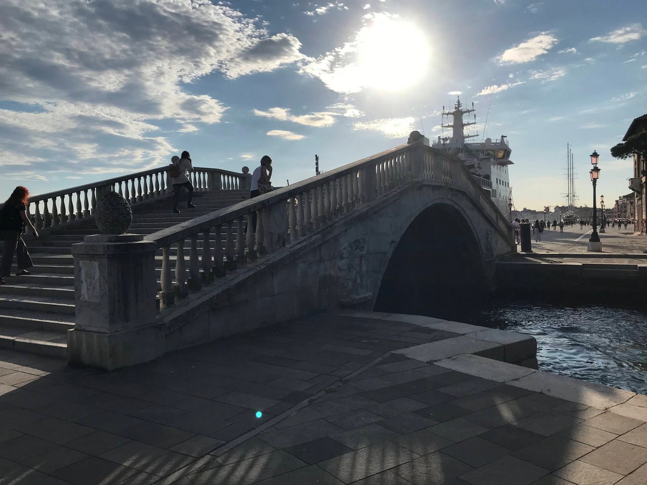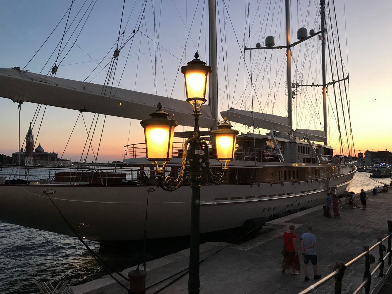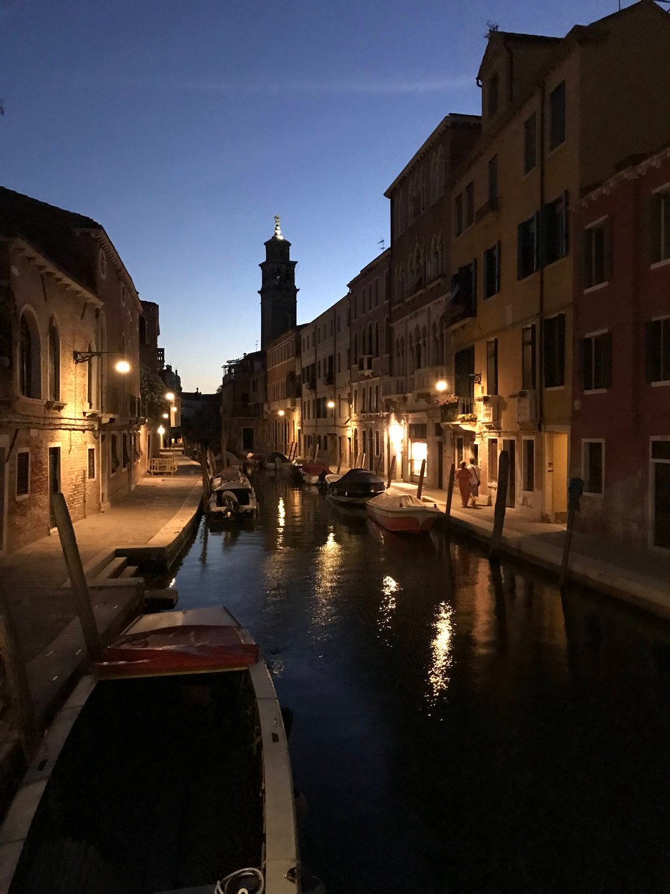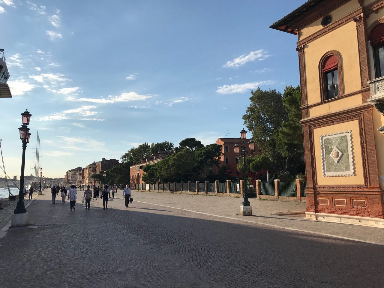 13 juillet. Début de nuit agitée à cause d’un groupe de jeunes qui campent tout près. Nous changeons d’emplacement ce matin et nous nous rapprochons du chenal. Bel emplacement où nous serons plus tranquilles. D’un coup on voit défiler un porte containers à quelques mètres à peine du bord du camping, c’est très impressionnant d’autant que cela se fait dans un silence relatif. Préparation de l’annexe (la voiture d’Ariane), direction Venise pour une première visite. Parking Piazzale Roma, au 10 ème étage pile poil à la verticale des carabiniers où nous étions venus, l’an dernier, quand Papy avait été « pickpocketé ». Tarif 35 € la journée , mais c’est Venise tout s’explique ! Visite du ghetto juif, que nous n’avions pas vu la dernière fois. Michel va même jusqu’à payer les glaces et des cappuccinos. Merci Tonton. Puis flânerie dans les quartiers nord, avant de revenir vers le centre. La canicule est bien installée et il fait chaud. En fin de journée nous dînons au restaurant (service assuré par des Pakistanais), rien d’inoubliable si ce n’est le tarif. Retour au parking à pied. Voiture, camping, dodo.