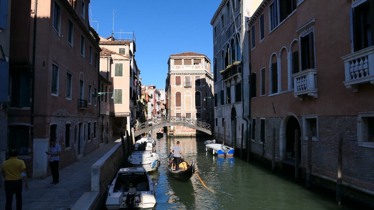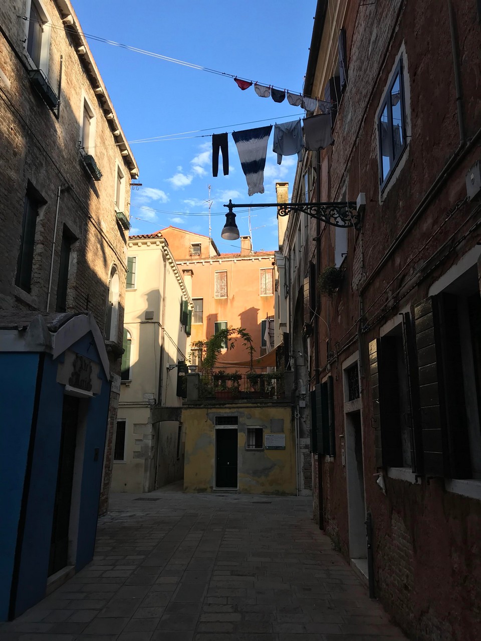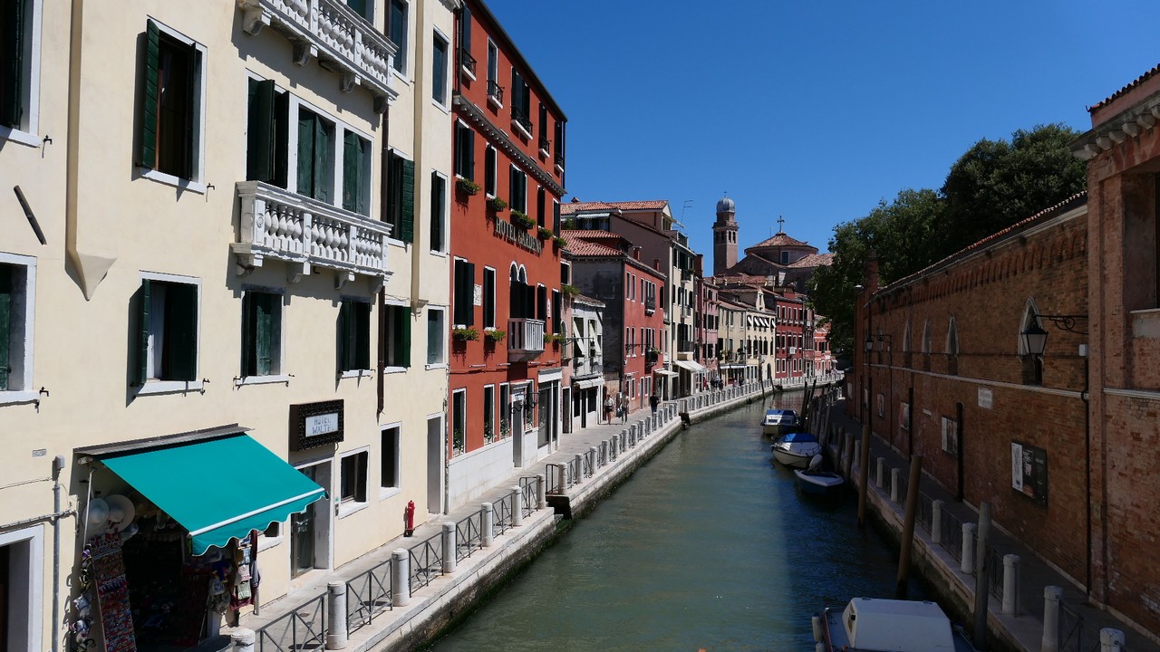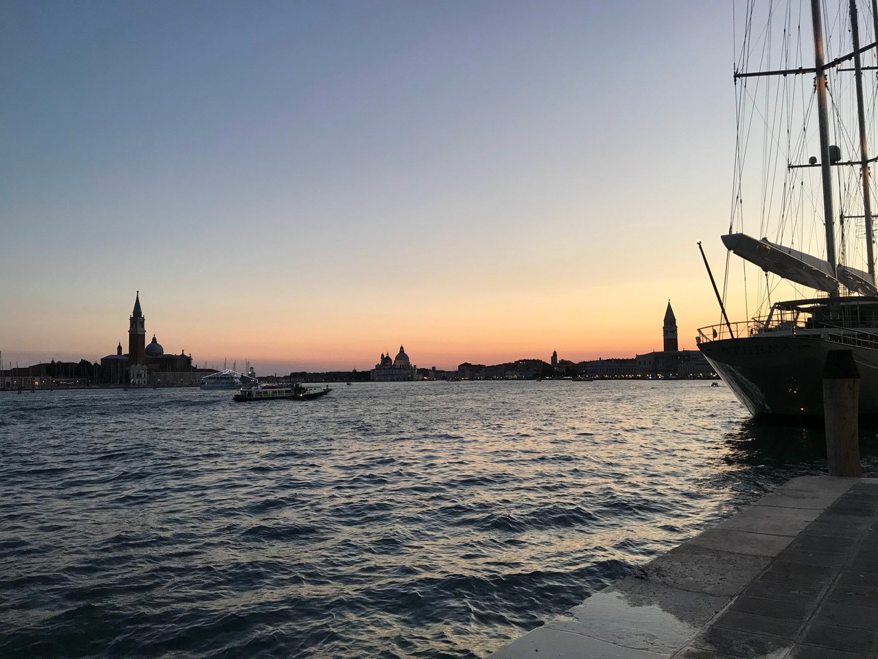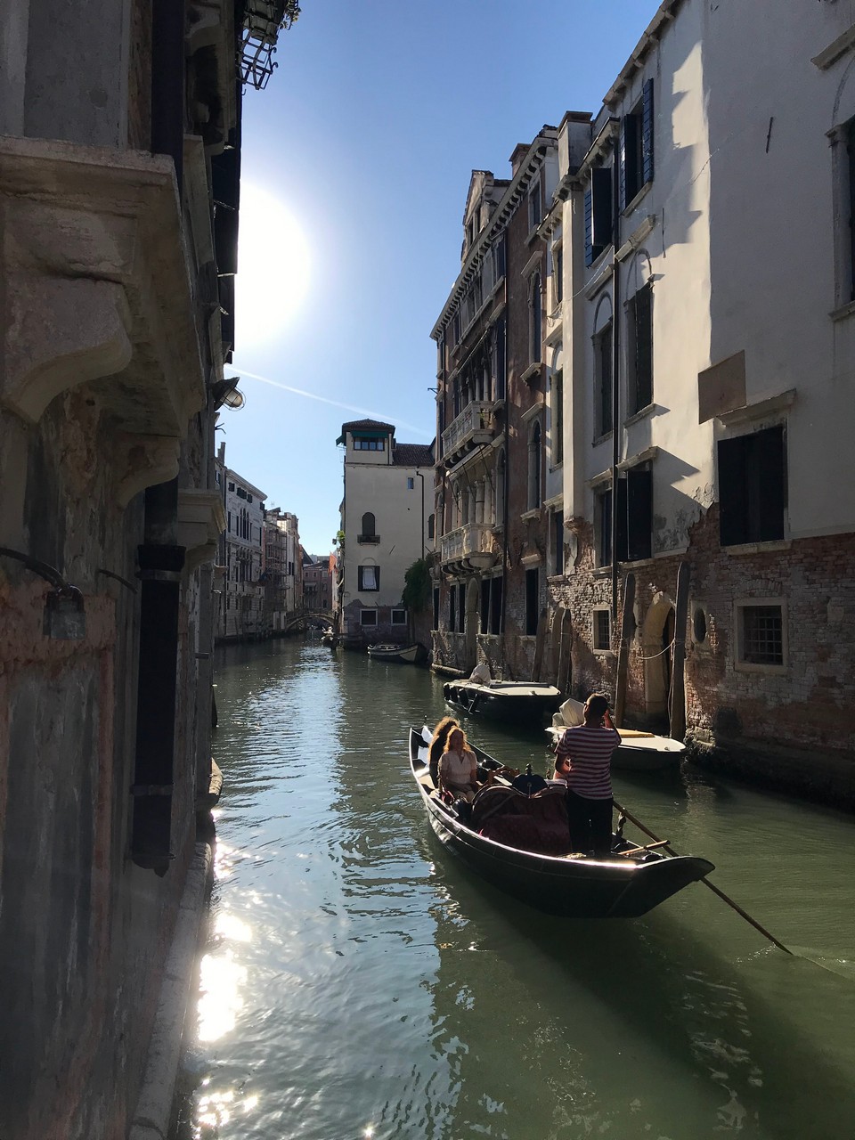 13 juillet. Début de nuit agitée à cause d’un groupe de jeunes qui campent tout près. Nous changeons d’emplacement ce matin et nous nous rapprochons du chenal. Bel emplacement où nous serons plus tranquilles. D’un coup on voit défiler un porte containers à quelques mètres à peine du bord du camping, c’est très impressionnant d’autant que cela se fait dans un silence relatif. Préparation de l’annexe (la voiture d’Ariane), direction Venise pour une première visite. Parking Piazzale Roma, au 10 ème étage pile poil à la verticale des carabiniers où nous étions venus, l’an dernier, quand Papy avait été « pickpocketé ». Tarif 35 € la journée , mais c’est Venise tout s’explique ! Visite du ghetto juif, que nous n’avions pas vu la dernière fois. Michel va même jusqu’à payer les glaces et des cappuccinos. Merci Tonton. Puis flânerie dans les quartiers nord, avant de revenir vers le centre. La canicule est bien installée et il fait chaud. En fin de journée nous dînons au restaurant (service assuré par des Pakistanais), rien d’inoubliable si ce n’est le tarif. Retour au parking à pied. Voiture, camping, dodo.