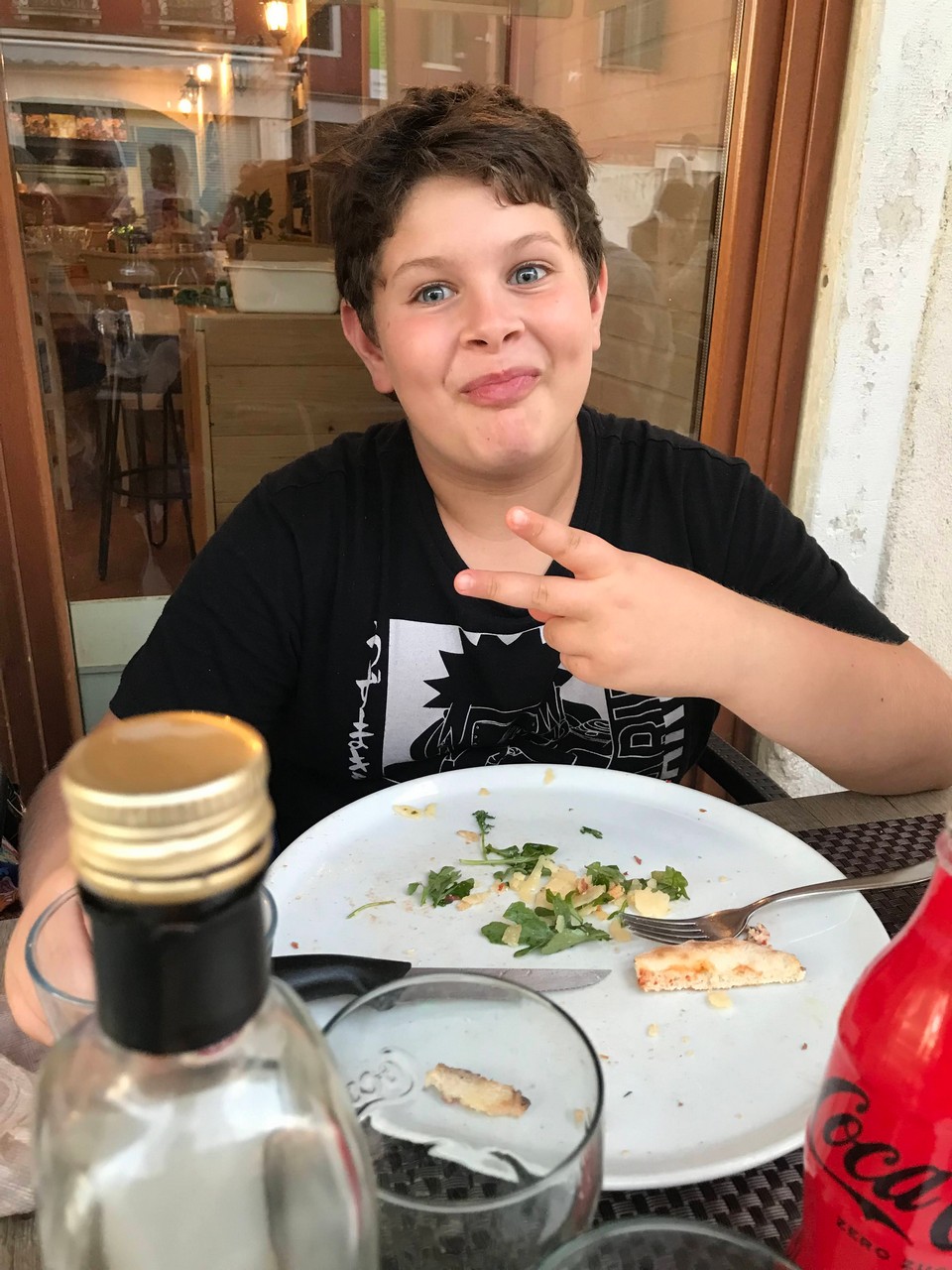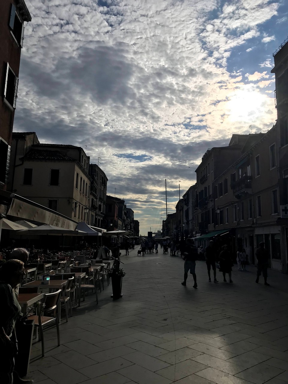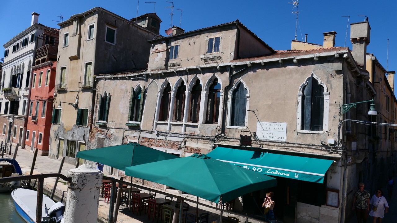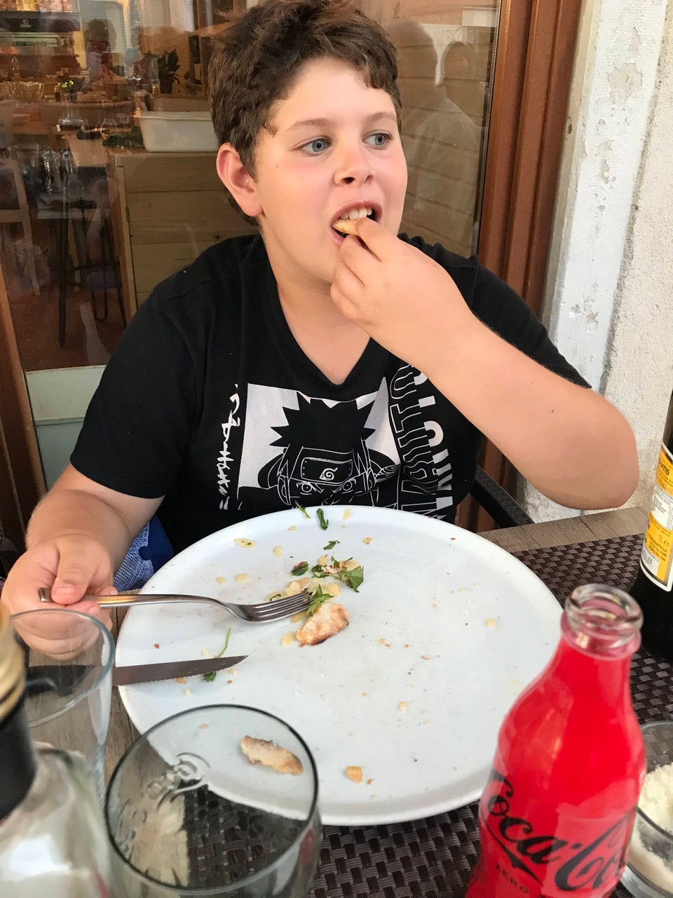 13 juillet. Début de nuit agitée à cause d’un groupe de jeunes qui campent tout près. Nous changeons d’emplacement ce matin et nous nous rapprochons du chenal. Bel emplacement où nous serons plus tranquilles. D’un coup on voit défiler un porte containers à quelques mètres à peine du bord du camping, c’est très impressionnant d’autant que cela se fait dans un silence relatif. Préparation de l’annexe (la voiture d’Ariane), direction Venise pour une première visite. Parking Piazzale Roma, au 10 ème étage pile poil à la verticale des carabiniers où nous étions venus, l’an dernier, quand Papy avait été « pickpocketé ». Tarif 35 € la journée , mais c’est Venise tout s’explique ! Visite du ghetto juif, que nous n’avions pas vu la dernière fois. Michel va même jusqu’à payer les glaces et des cappuccinos. Merci Tonton. Puis flânerie dans les quartiers nord, avant de revenir vers le centre. La canicule est bien installée et il fait chaud. En fin de journée nous dînons au restaurant (service assuré par des Pakistanais), rien d’inoubliable si ce n’est le tarif. Retour au parking à pied. Voiture, camping, dodo.