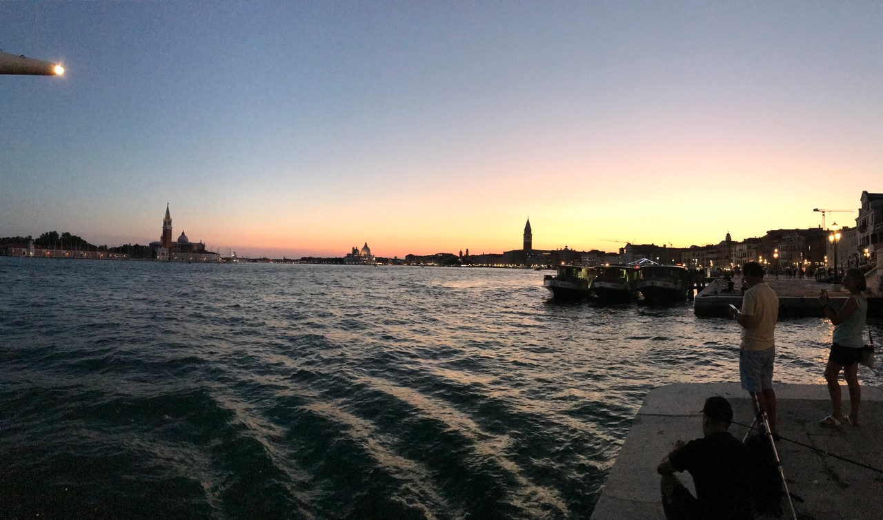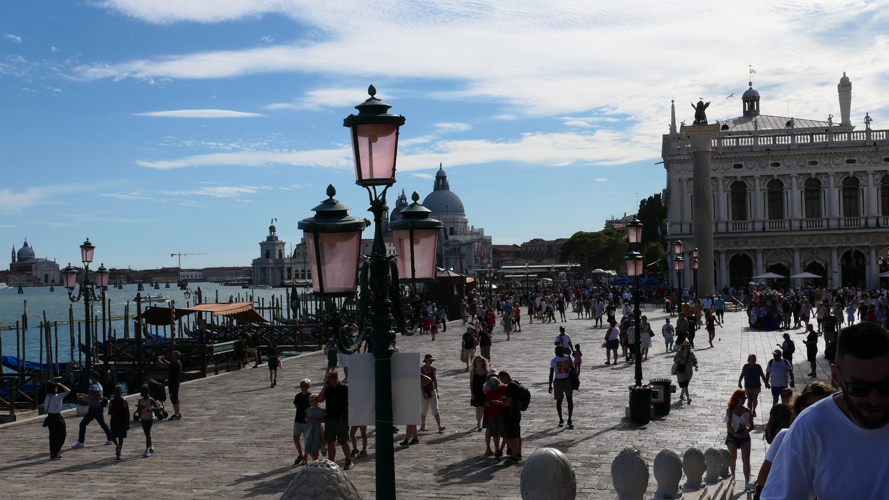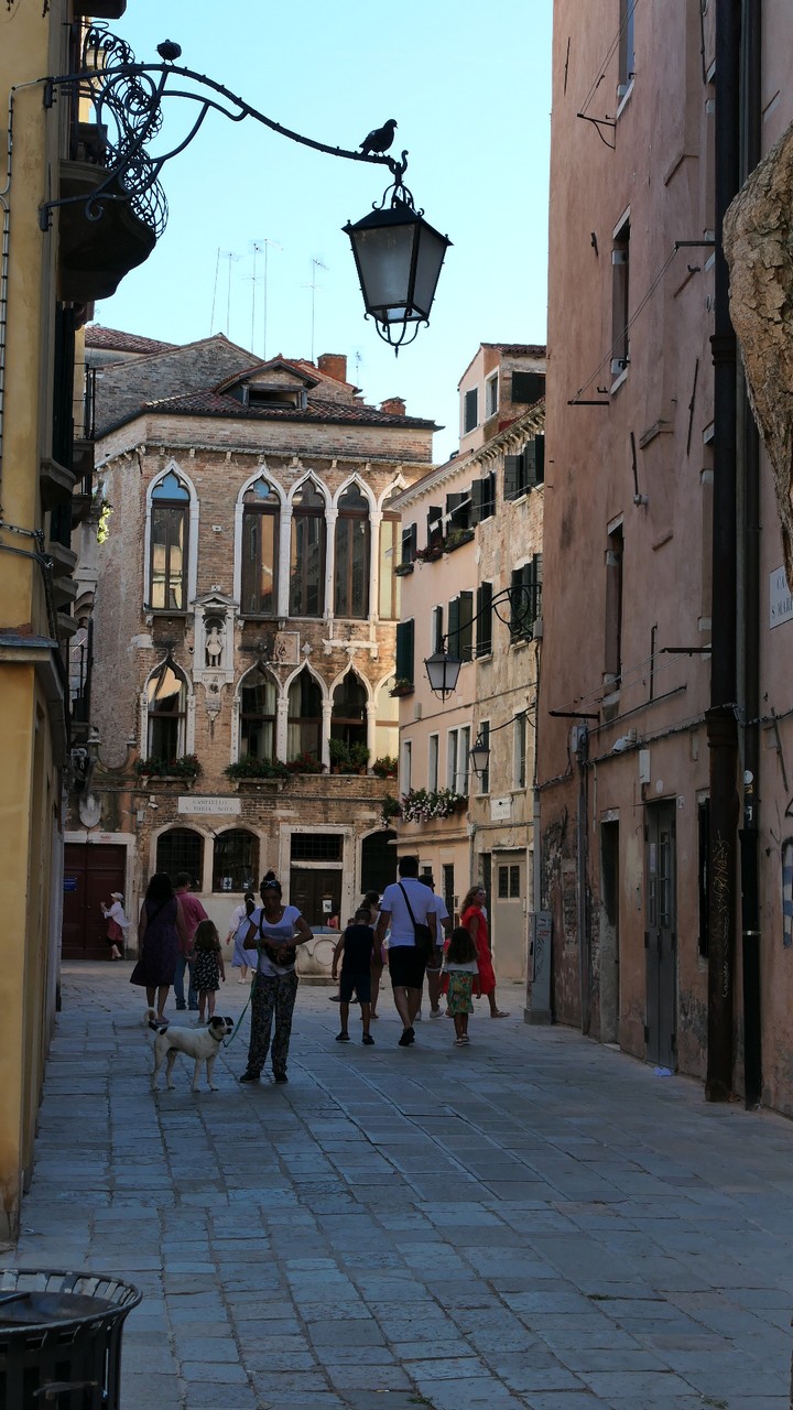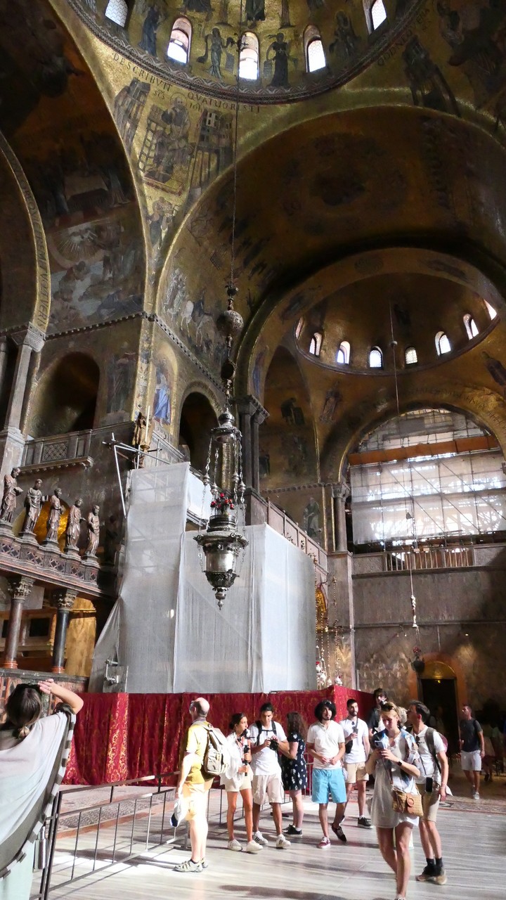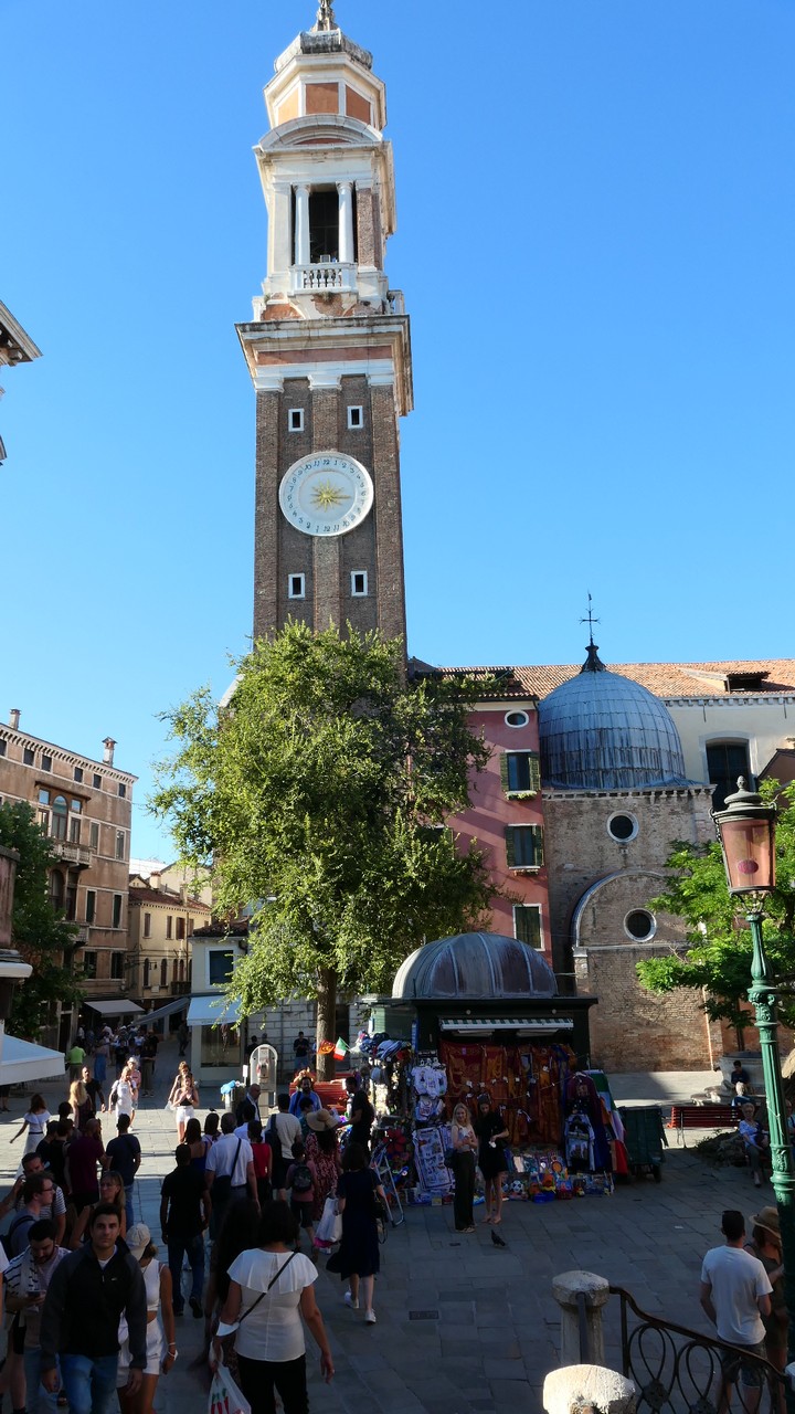 14 juillet. Retour à Venise toujours grâce à l’annexe. Direction le parking du Tronchetto au tarif respectable de 22 €. Le petit train automatique nous amène directement à la gare centrale de Venise.On prend le vaporetto sur le grand canal. On débarque place Saint-Marc Nous faisons la queue pour visiter la cathédrale Saint-Marc, Candice ne peut y accéder parce ses épaules ne sont pas couvertes. Mimi et Papy visitent seuls. On se retrouve à la sortie pour aller boire un verre à une terrasse(et faire pipi) deux cafés et deux cocas : 28 € !!!! il fait toujours aussi chaud. Puis direction l’arsenal. Chemin faisant nous découvrons un quartier beaucoup plus authentique à l’écart des hordes de touristes. Parc avec des tortues et des zanzares ! Dîner dans une pizzeria tenue par des Égyptiens !!??. C’est bon et relativement bon marché pour Venise. À la nuit retour au parking en vaporretto. Voiture, camping, dodo.