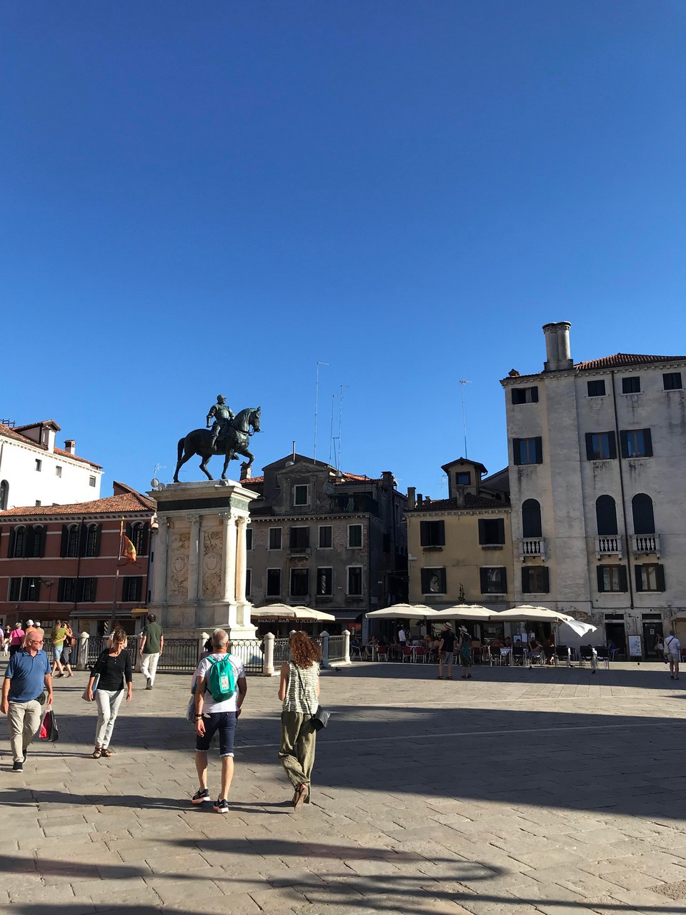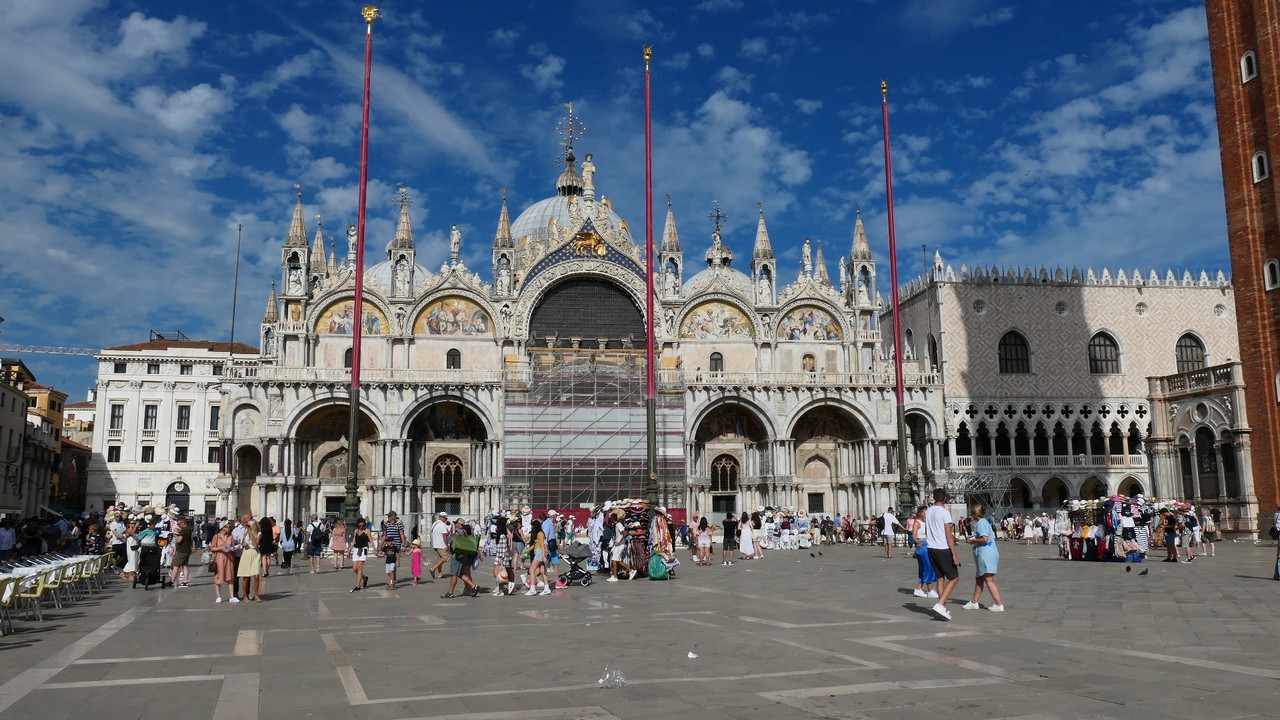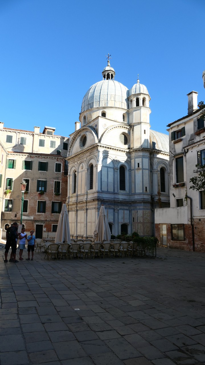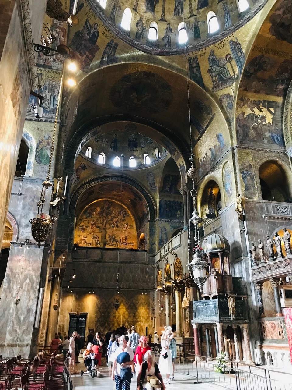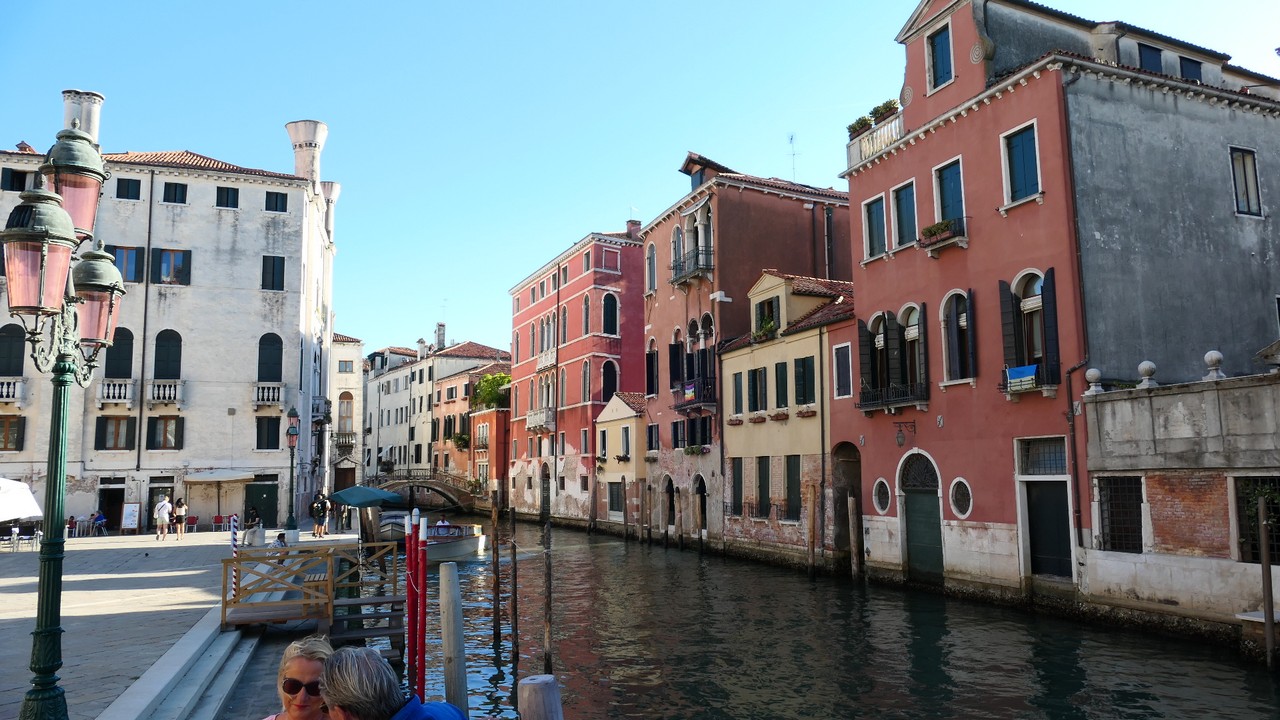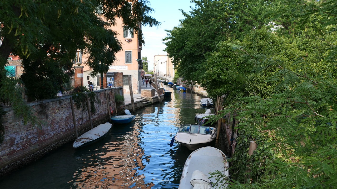 14 juillet. Retour à Venise toujours grâce à l’annexe. Direction le parking du Tronchetto au tarif respectable de 22 €. Le petit train automatique nous amène directement à la gare centrale de Venise.On prend le vaporetto sur le grand canal. On débarque place Saint-Marc Nous faisons la queue pour visiter la cathédrale Saint-Marc, Candice ne peut y accéder parce ses épaules ne sont pas couvertes. Mimi et Papy visitent seuls. On se retrouve à la sortie pour aller boire un verre à une terrasse(et faire pipi) deux cafés et deux cocas : 28 € !!!! il fait toujours aussi chaud. Puis direction l’arsenal. Chemin faisant nous découvrons un quartier beaucoup plus authentique à l’écart des hordes de touristes. Parc avec des tortues et des zanzares ! Dîner dans une pizzeria tenue par des Égyptiens !!??. C’est bon et relativement bon marché pour Venise. À la nuit retour au parking en vaporretto. Voiture, camping, dodo.