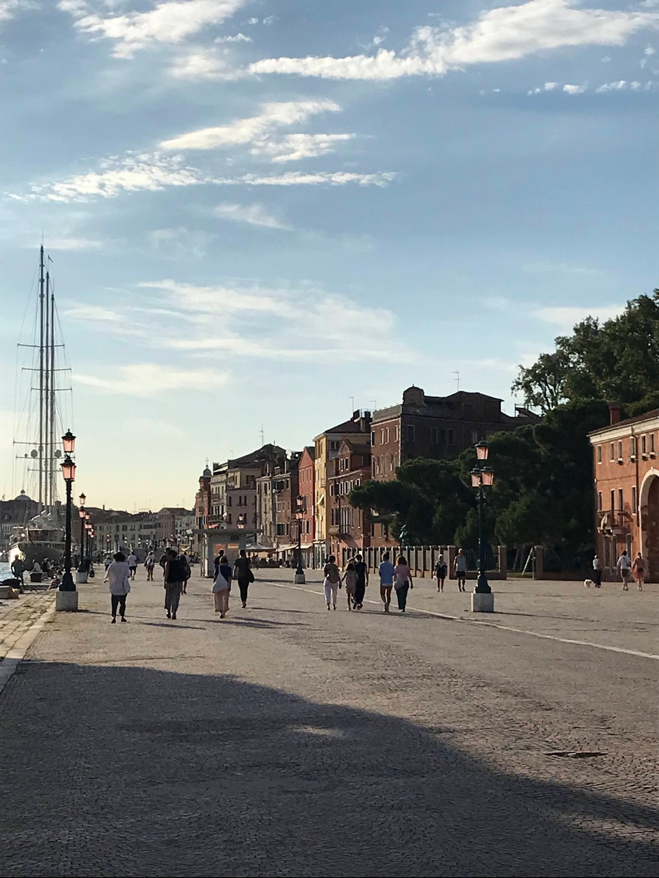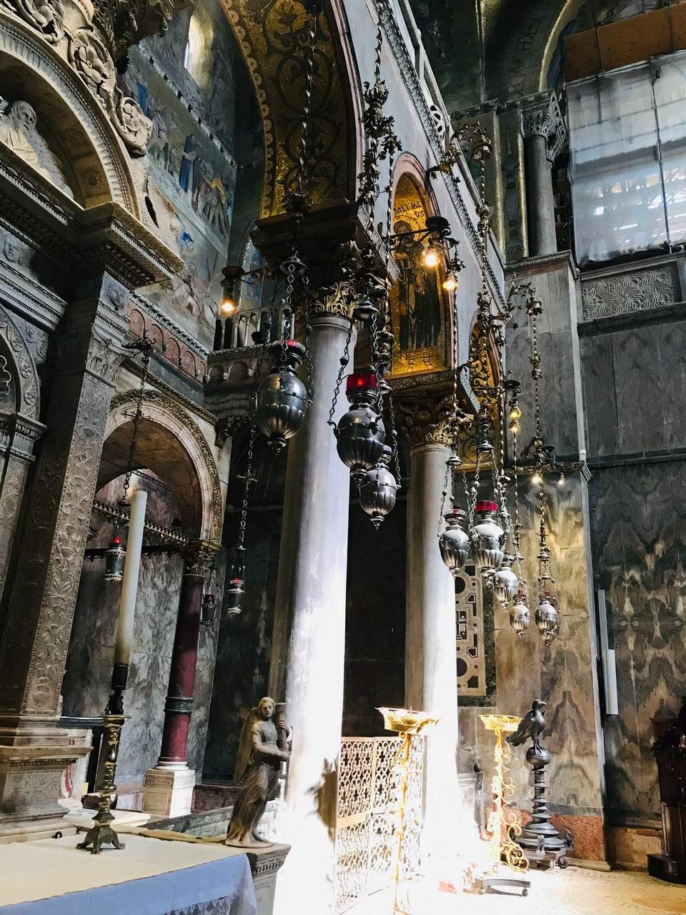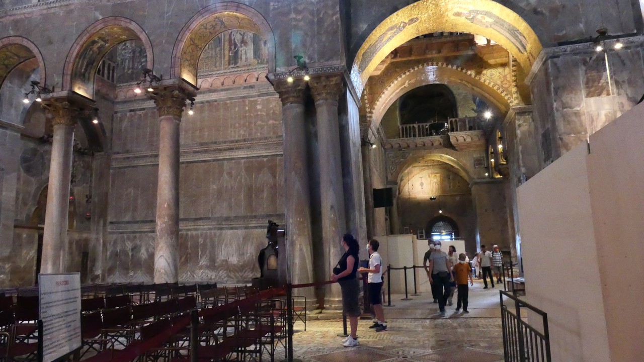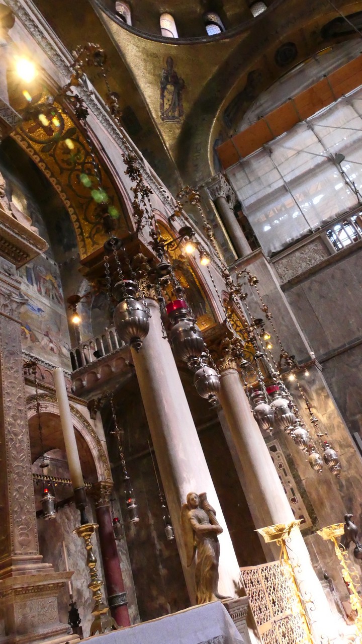 14 juillet. Retour à Venise toujours grâce à l’annexe. Direction le parking du Tronchetto au tarif respectable de 22 €. Le petit train automatique nous amène directement à la gare centrale de Venise.On prend le vaporetto sur le grand canal. On débarque place Saint-Marc Nous faisons la queue pour visiter la cathédrale Saint-Marc, Candice ne peut y accéder parce ses épaules ne sont pas couvertes. Mimi et Papy visitent seuls. On se retrouve à la sortie pour aller boire un verre à une terrasse(et faire pipi) deux cafés et deux cocas : 28 € !!!! il fait toujours aussi chaud. Puis direction l’arsenal. Chemin faisant nous découvrons un quartier beaucoup plus authentique à l’écart des hordes de touristes. Parc avec des tortues et des zanzares ! Dîner dans une pizzeria tenue par des Égyptiens !!??. C’est bon et relativement bon marché pour Venise. À la nuit retour au parking en vaporretto. Voiture, camping, dodo.