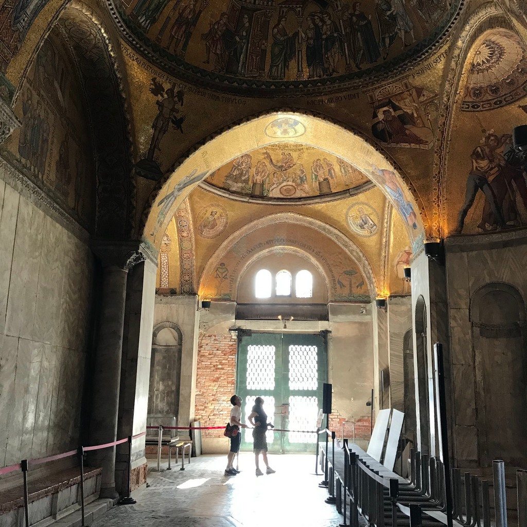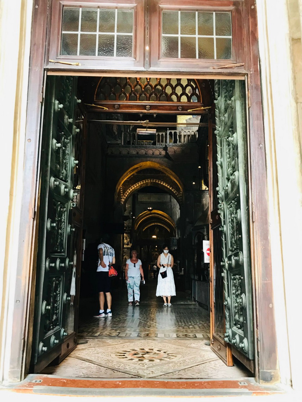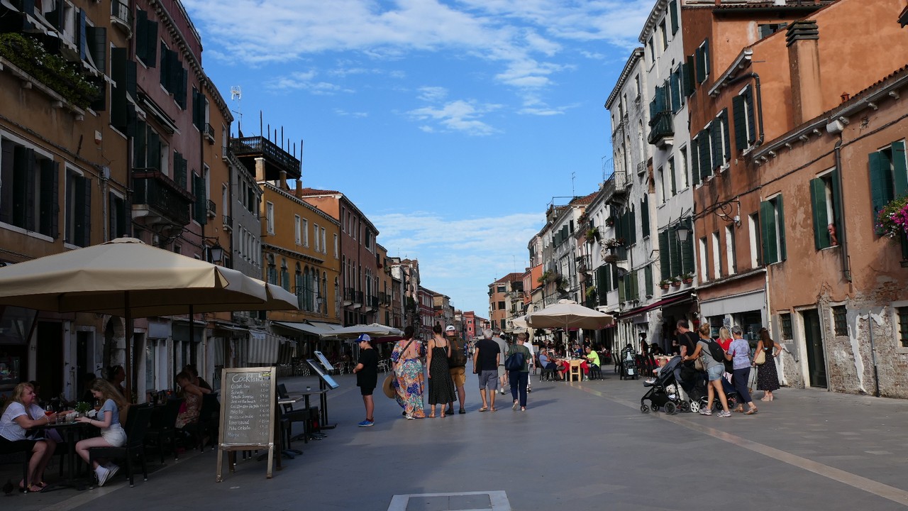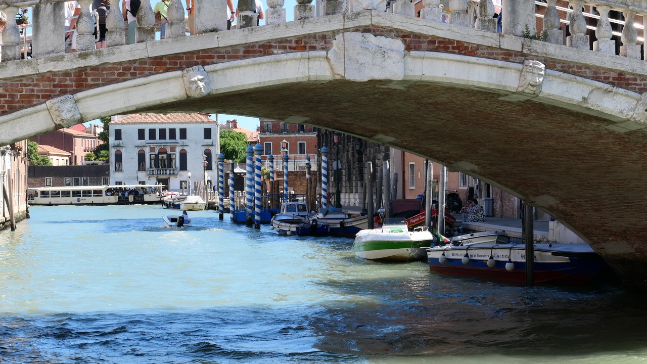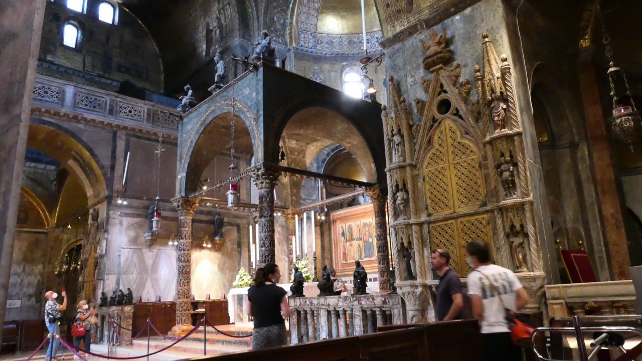 14 juillet. Retour à Venise toujours grâce à l’annexe. Direction le parking du Tronchetto au tarif respectable de 22 €. Le petit train automatique nous amène directement à la gare centrale de Venise.On prend le vaporetto sur le grand canal. On débarque place Saint-Marc Nous faisons la queue pour visiter la cathédrale Saint-Marc, Candice ne peut y accéder parce ses épaules ne sont pas couvertes. Mimi et Papy visitent seuls. On se retrouve à la sortie pour aller boire un verre à une terrasse(et faire pipi) deux cafés et deux cocas : 28 € !!!! il fait toujours aussi chaud. Puis direction l’arsenal. Chemin faisant nous découvrons un quartier beaucoup plus authentique à l’écart des hordes de touristes. Parc avec des tortues et des zanzares ! Dîner dans une pizzeria tenue par des Égyptiens !!??. C’est bon et relativement bon marché pour Venise. À la nuit retour au parking en vaporretto. Voiture, camping, dodo.