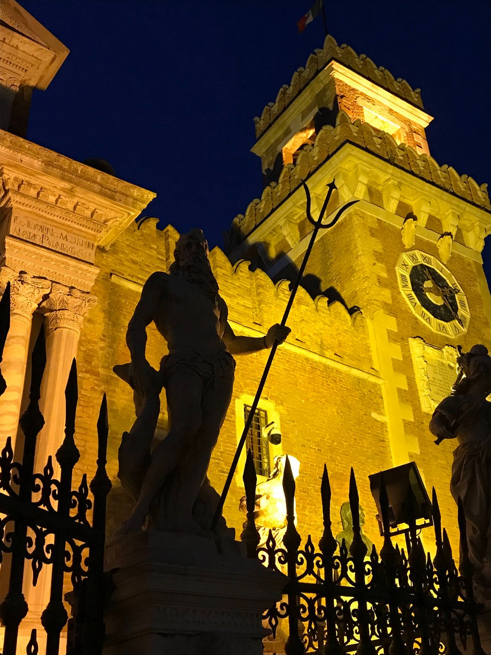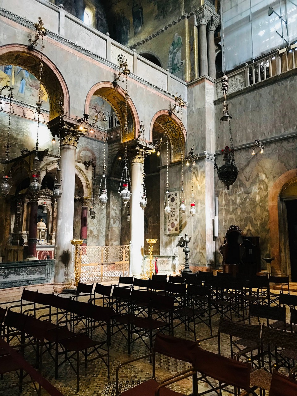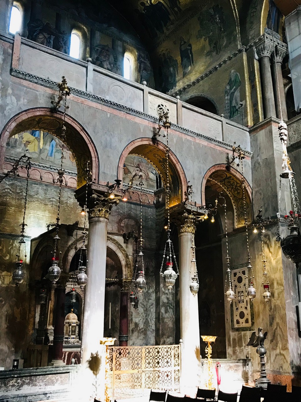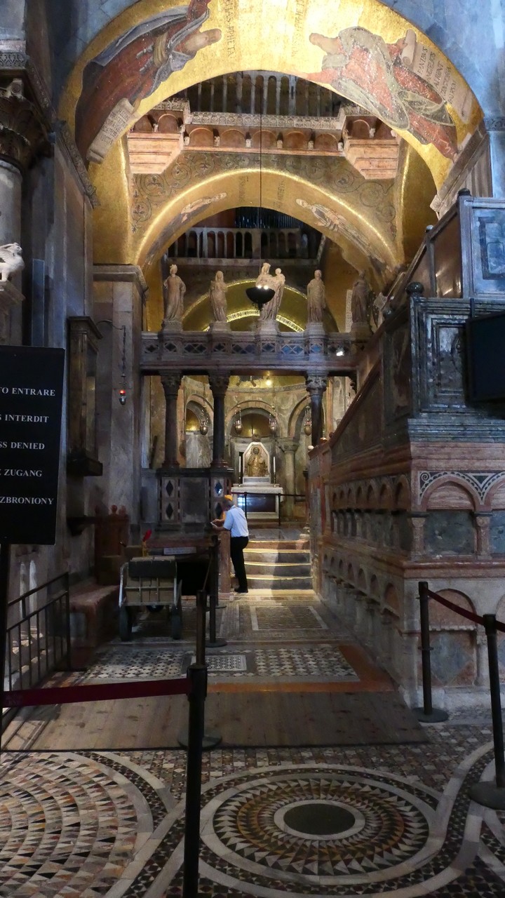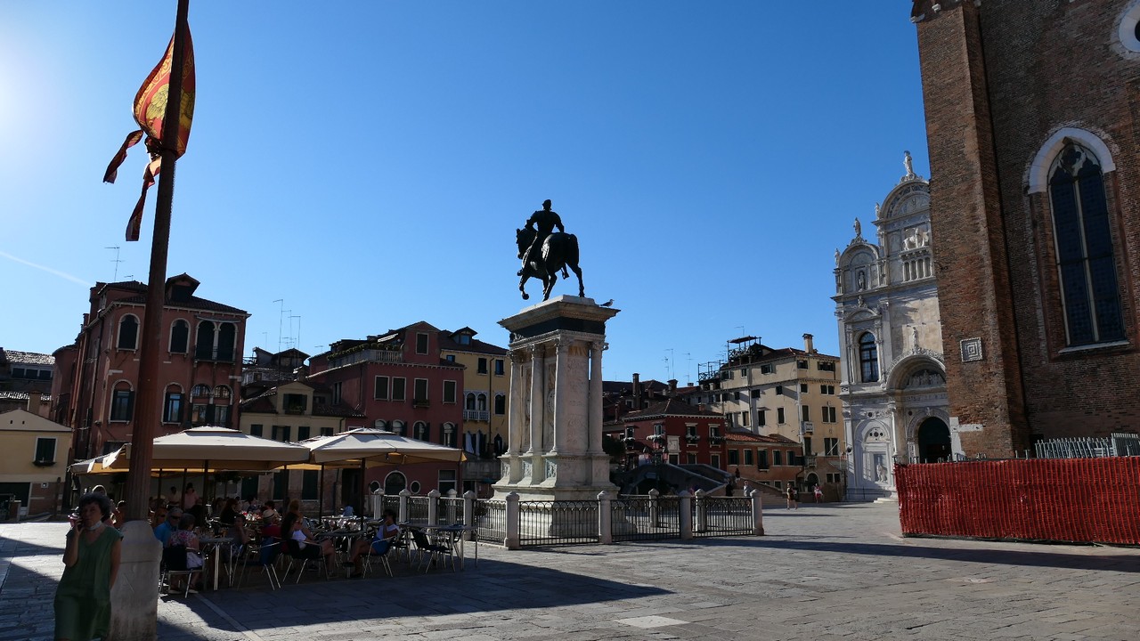 14 juillet. Retour à Venise toujours grâce à l’annexe. Direction le parking du Tronchetto au tarif respectable de 22 €. Le petit train automatique nous amène directement à la gare centrale de Venise.On prend le vaporetto sur le grand canal. On débarque place Saint-Marc Nous faisons la queue pour visiter la cathédrale Saint-Marc, Candice ne peut y accéder parce ses épaules ne sont pas couvertes. Mimi et Papy visitent seuls. On se retrouve à la sortie pour aller boire un verre à une terrasse(et faire pipi) deux cafés et deux cocas : 28 € !!!! il fait toujours aussi chaud. Puis direction l’arsenal. Chemin faisant nous découvrons un quartier beaucoup plus authentique à l’écart des hordes de touristes. Parc avec des tortues et des zanzares ! Dîner dans une pizzeria tenue par des Égyptiens !!??. C’est bon et relativement bon marché pour Venise. À la nuit retour au parking en vaporretto. Voiture, camping, dodo.