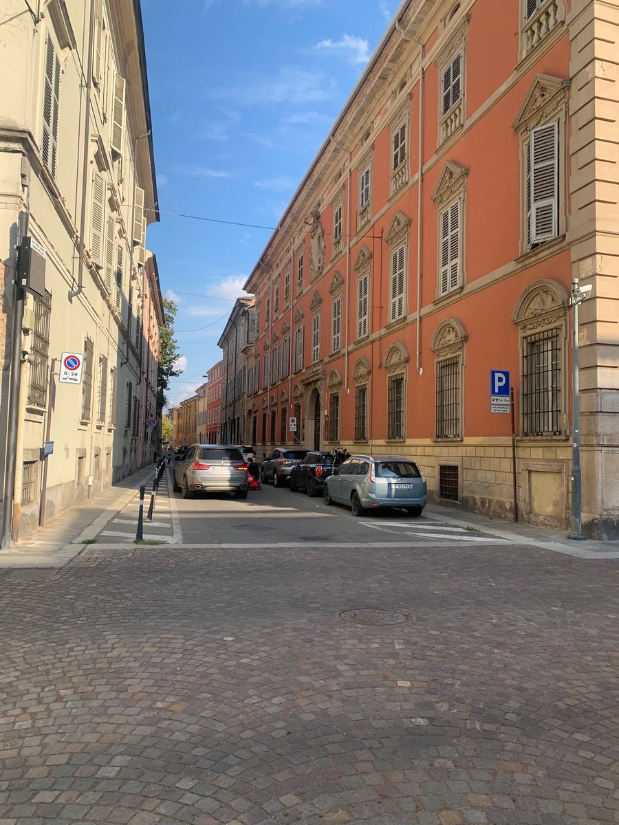 On arrive à la tombée de la nuit, c’est assez sinistre coincé entre deux lignes de train, l’autoroute Milan Bologne et un quartier isolé de maison.