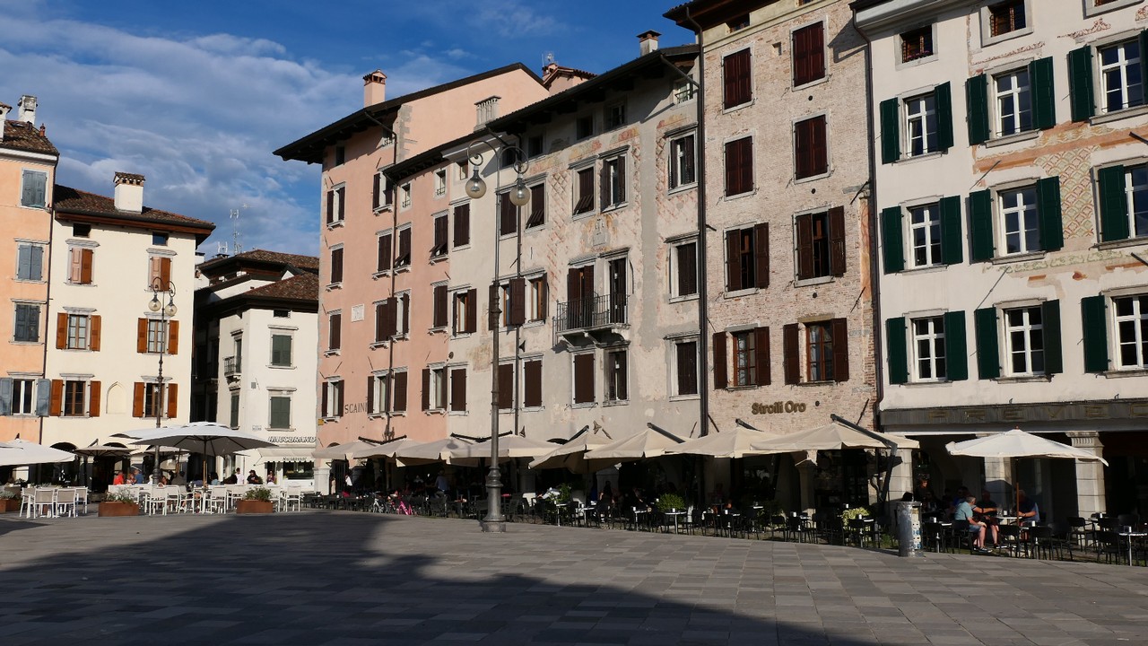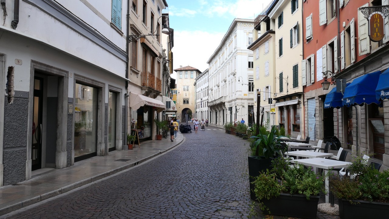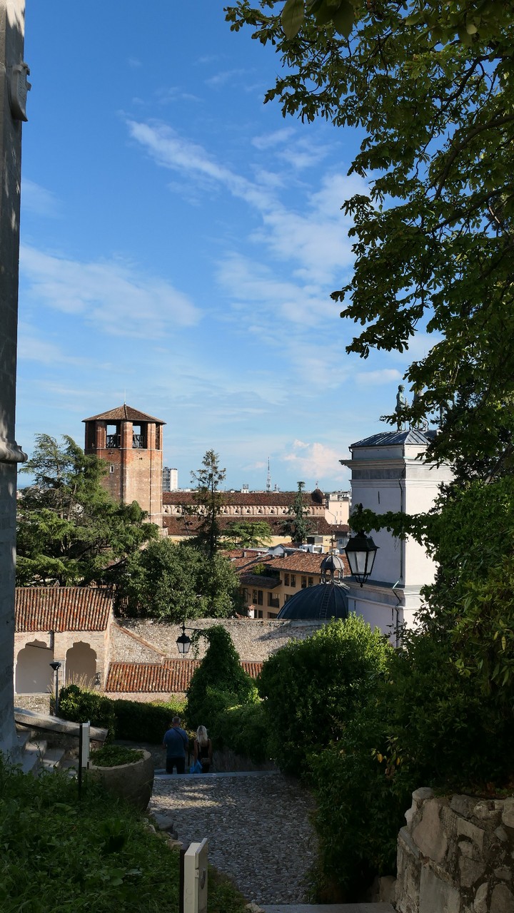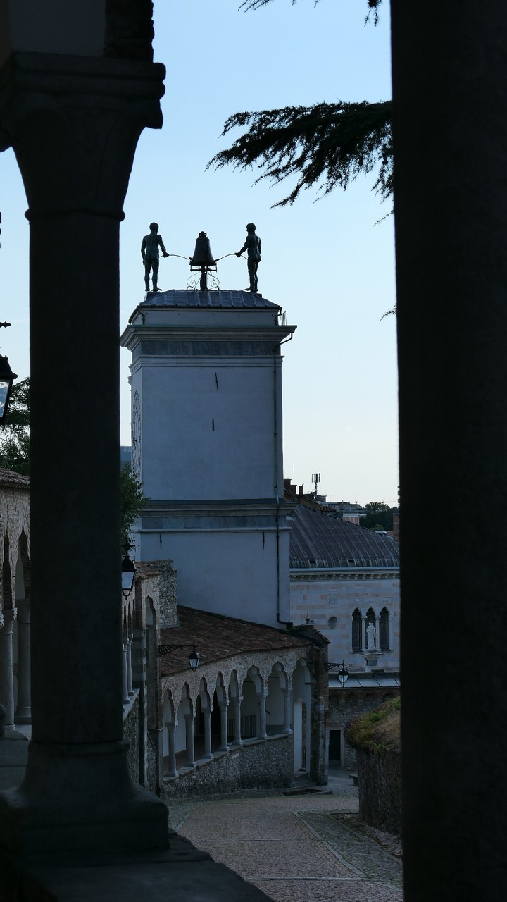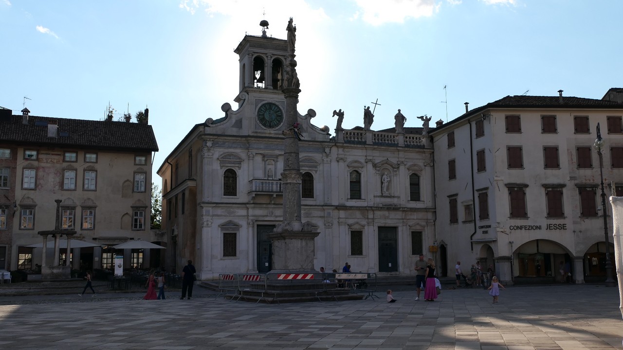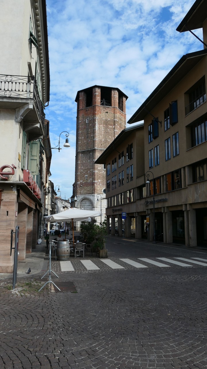 Voici Udine. Parking en bordure de la ville fortifiée, on entame la visite. Petite cité pleine de charme et de caractère qui a conservé une belle architecture médiévale et vénitienne. On monte au château pour admirer le panorama sur les Alpes.