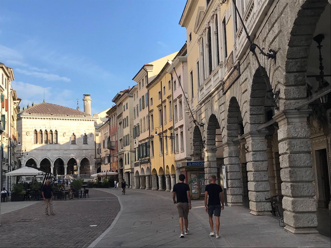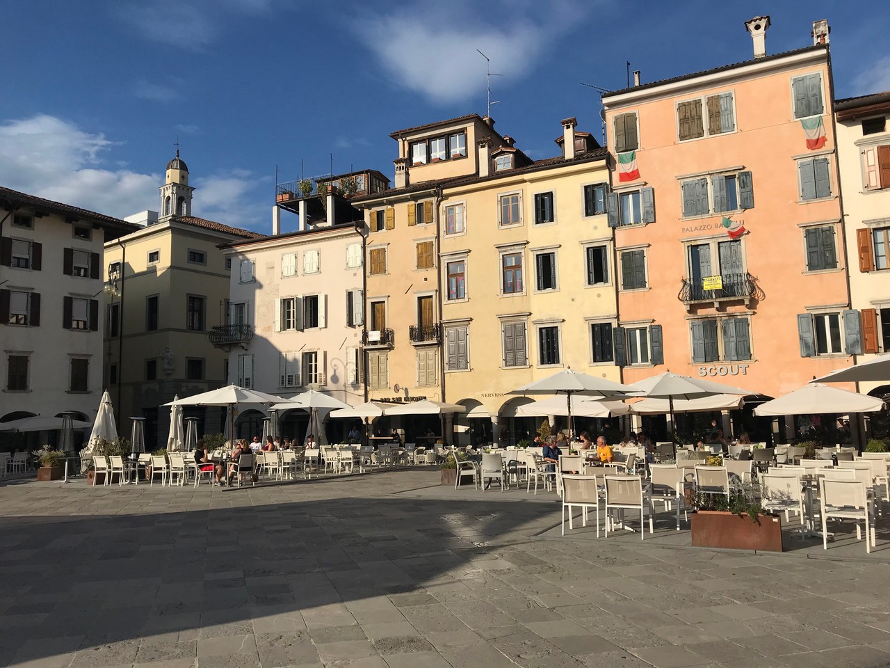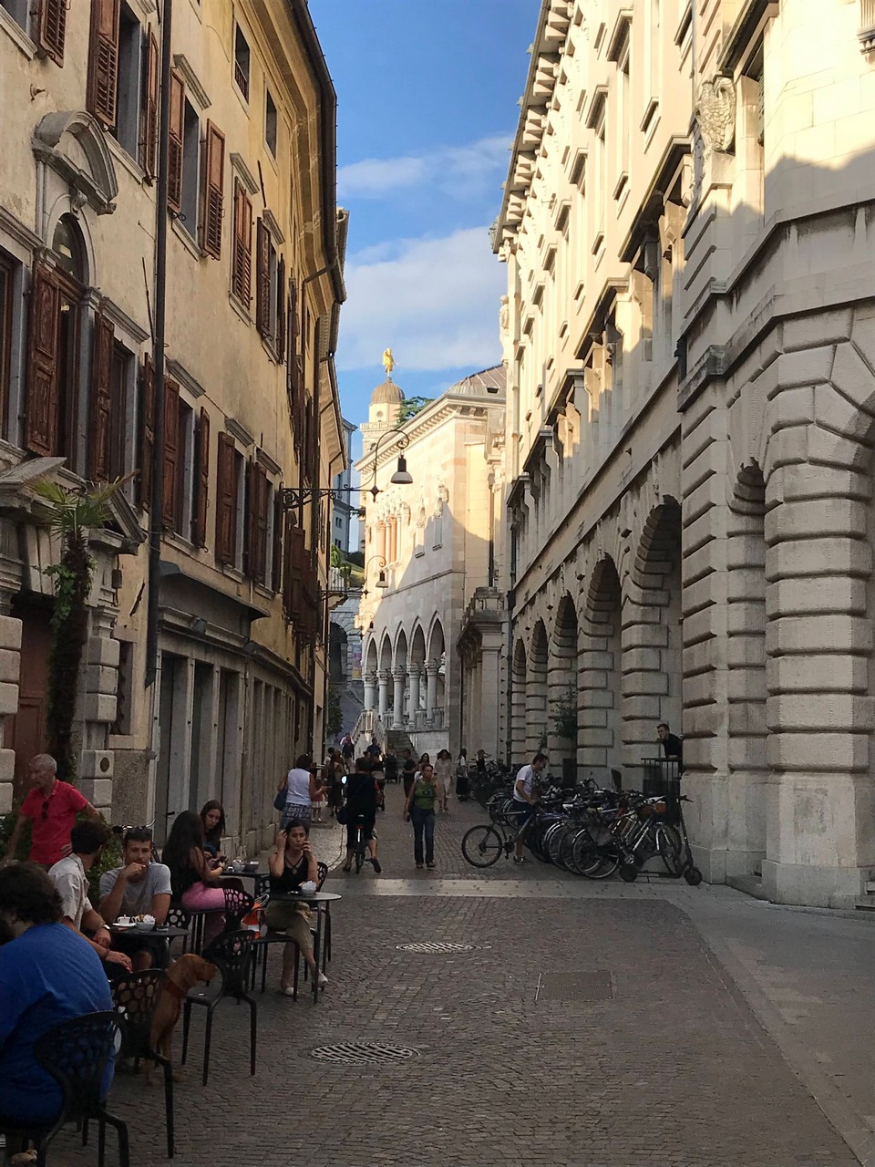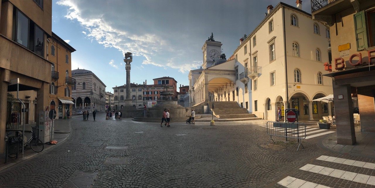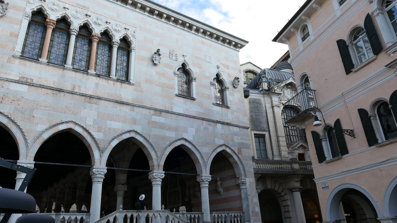 Voici Udine. Parking en bordure de la ville fortifiée, on entame la visite. Petite cité pleine de charme et de caractère qui a conservé une belle architecture médiévale et vénitienne. On monte au château pour admirer le panorama sur les Alpes.