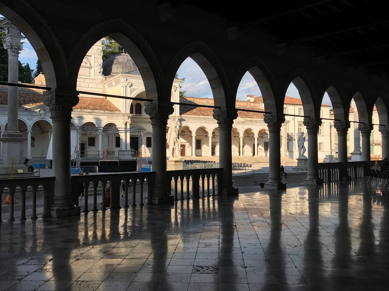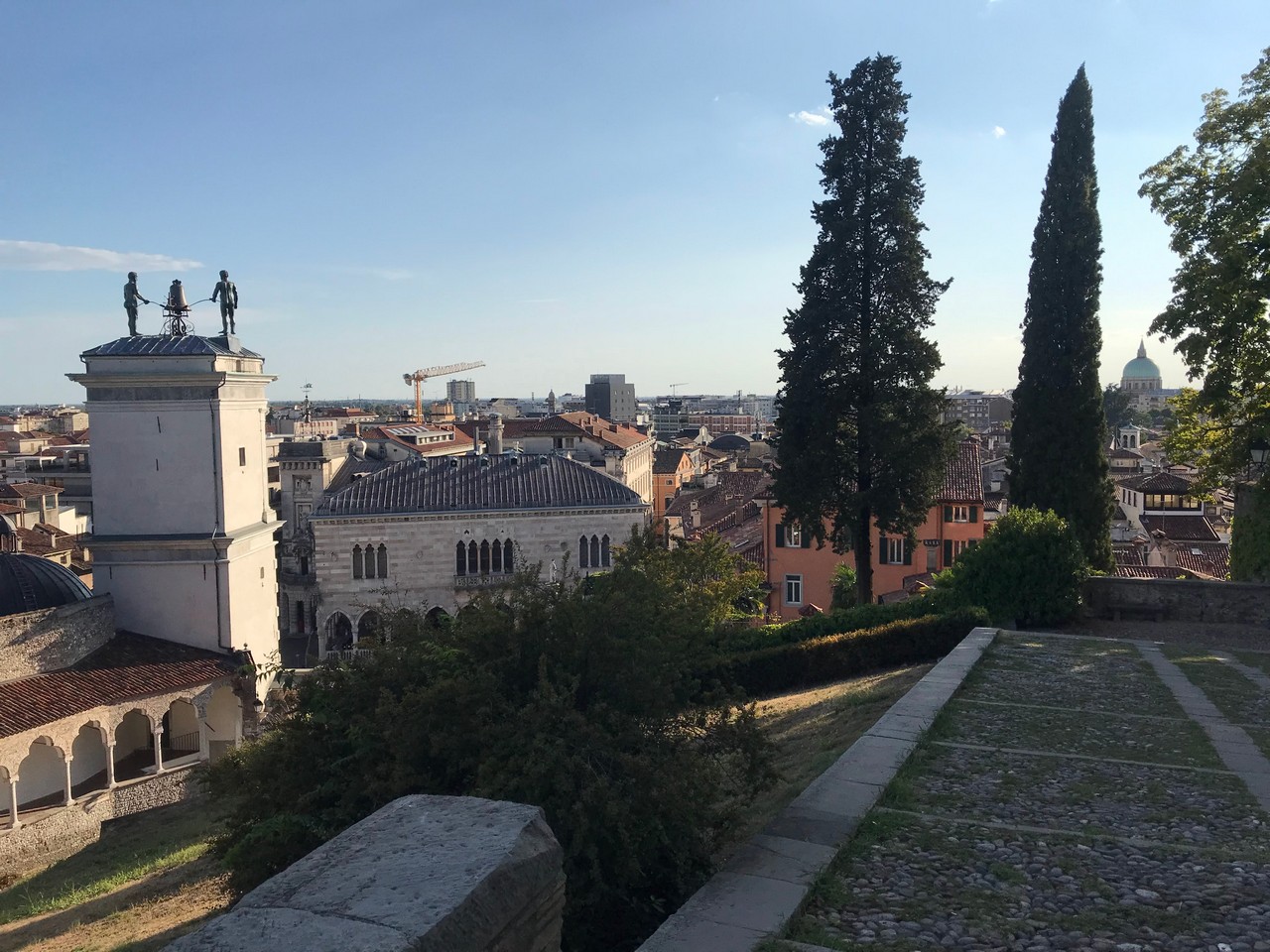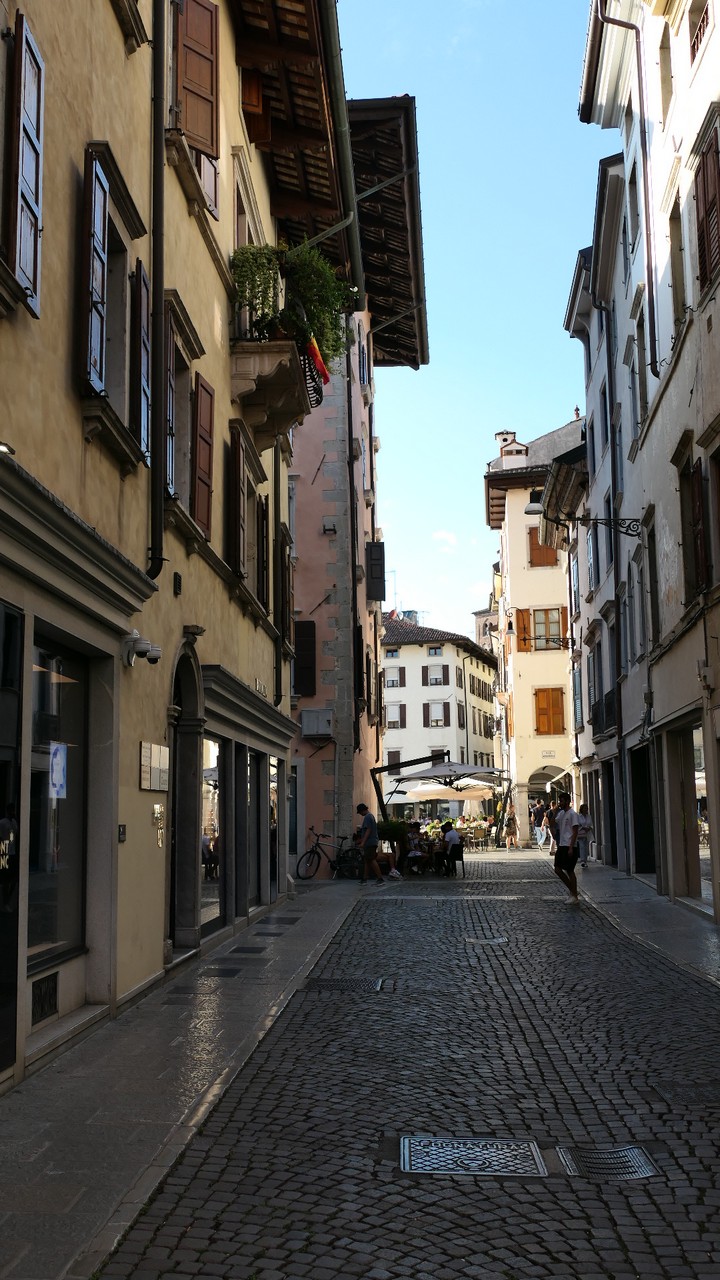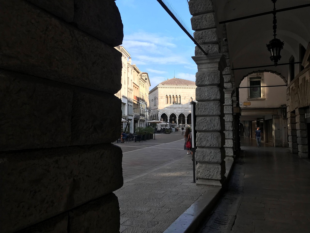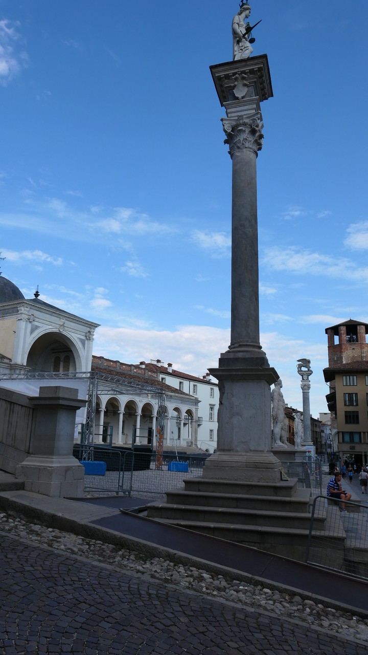 Voici Udine. Parking en bordure de la ville fortifiée, on entame la visite. Petite cité pleine de charme et de caractère qui a conservé une belle architecture médiévale et vénitienne. On monte au château pour admirer le panorama sur les Alpes.