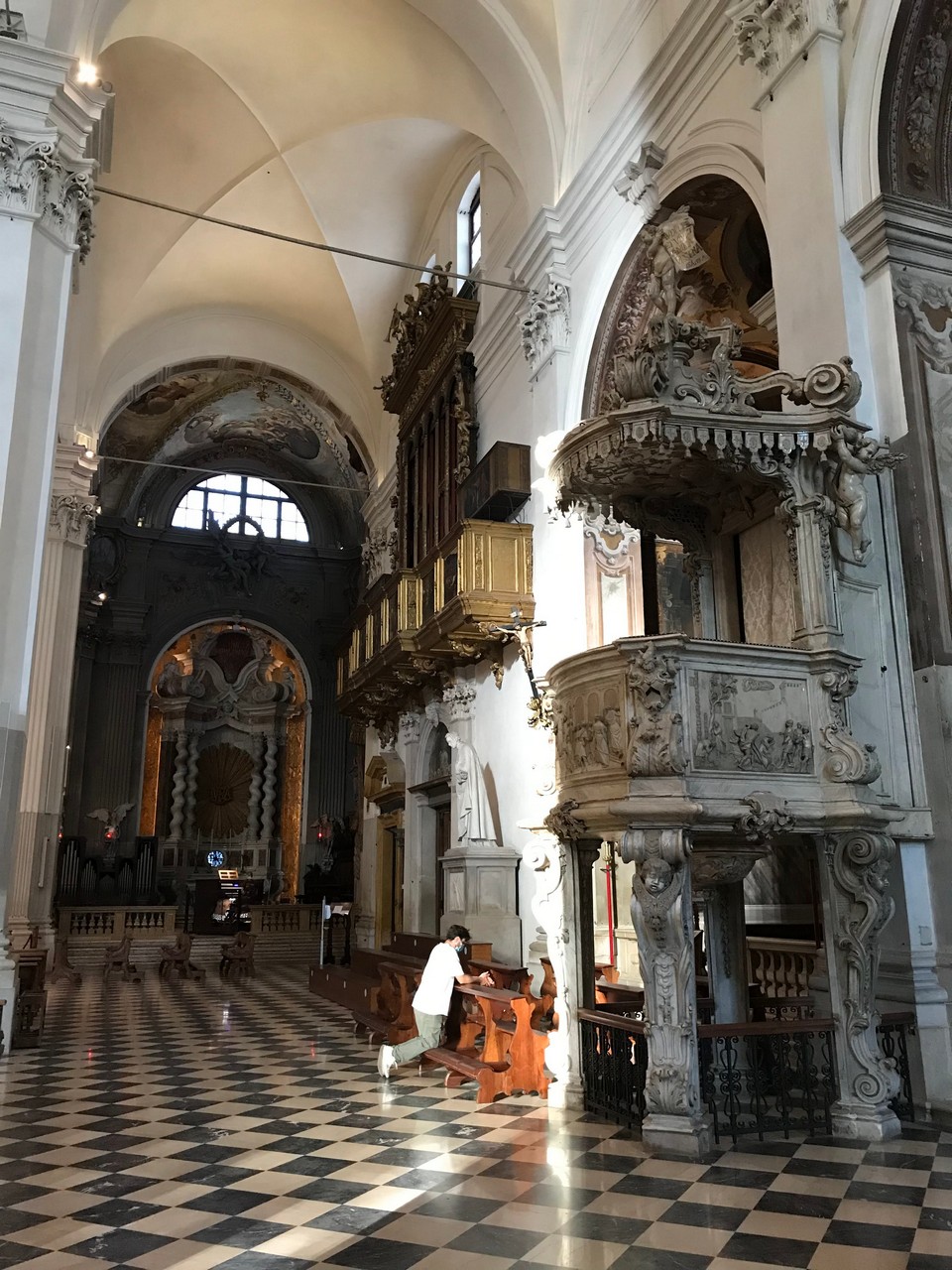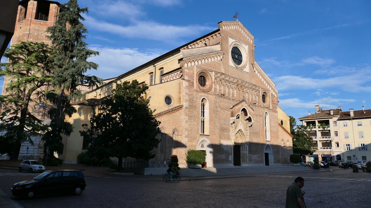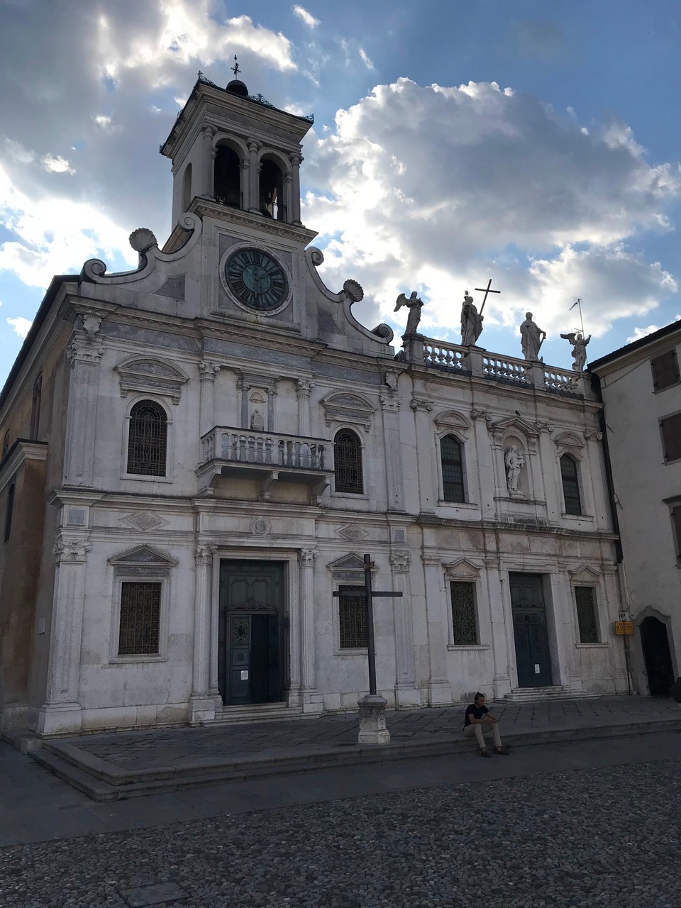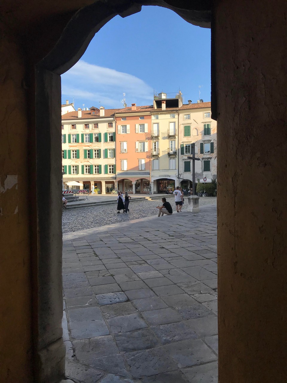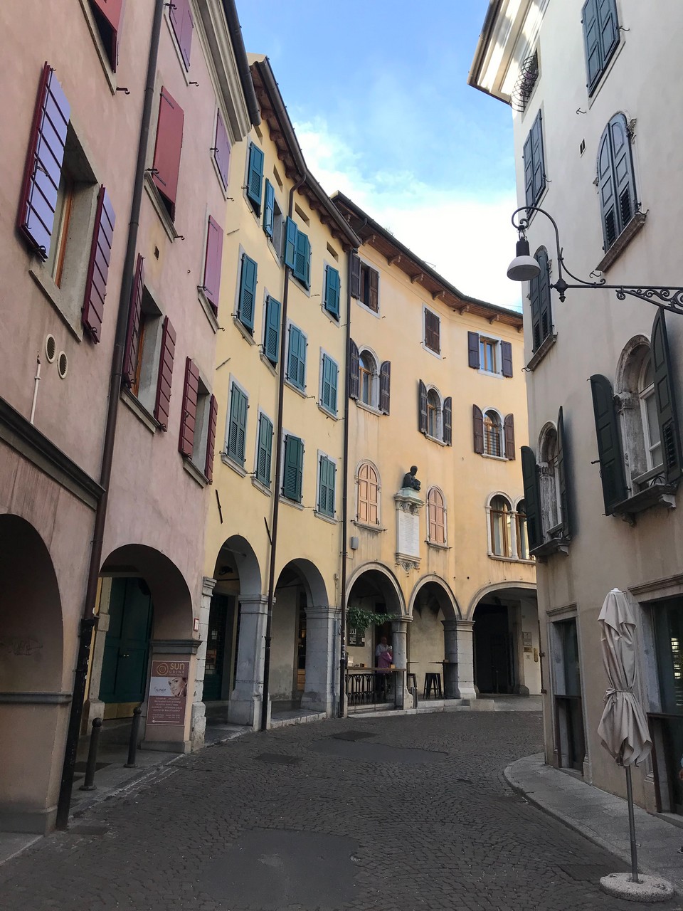 Voici Udine. Parking en bordure de la ville fortifiée, on entame la visite. Petite cité pleine de charme et de caractère qui a conservé une belle architecture médiévale et vénitienne. On monte au château pour admirer le panorama sur les Alpes.