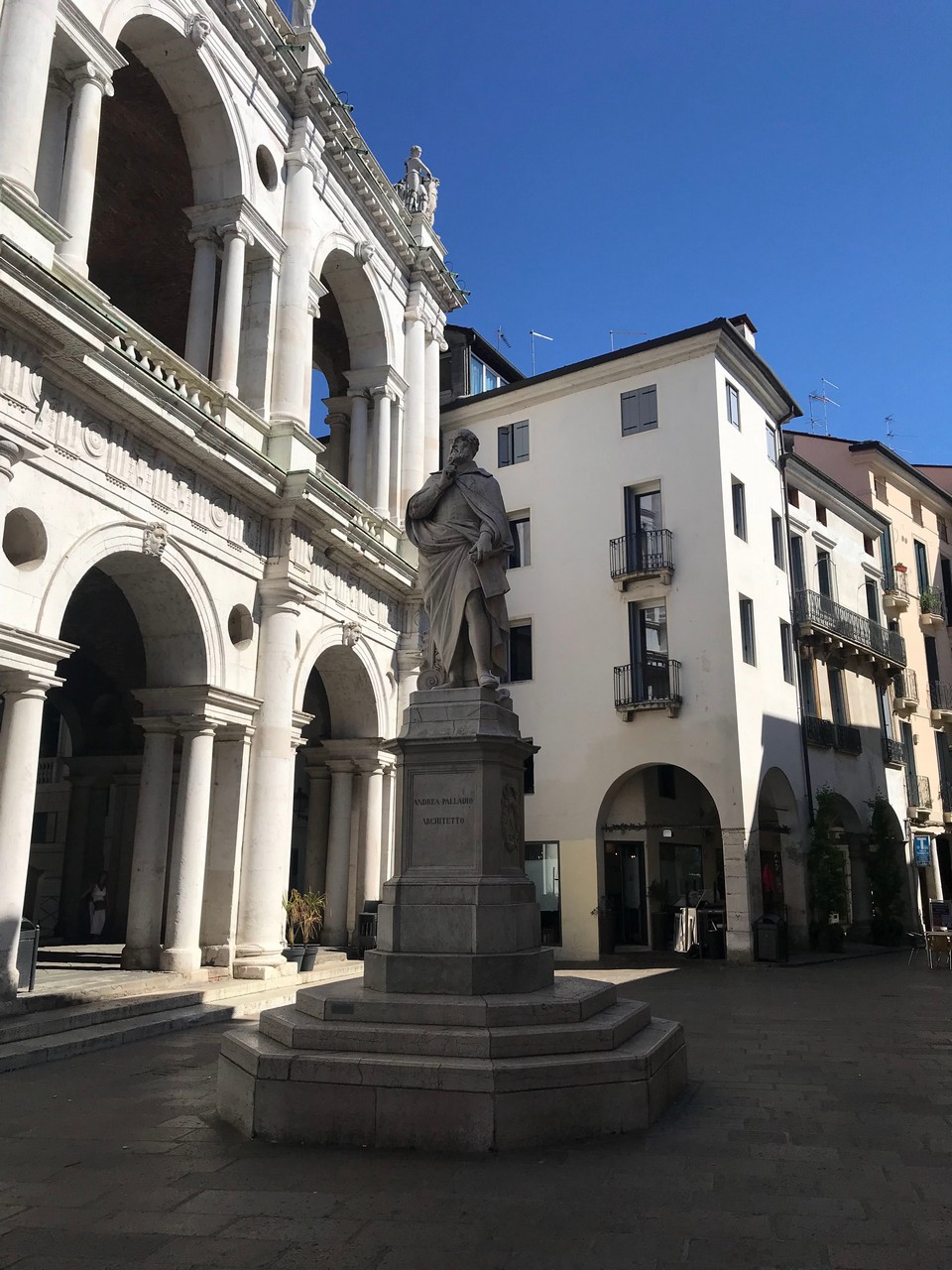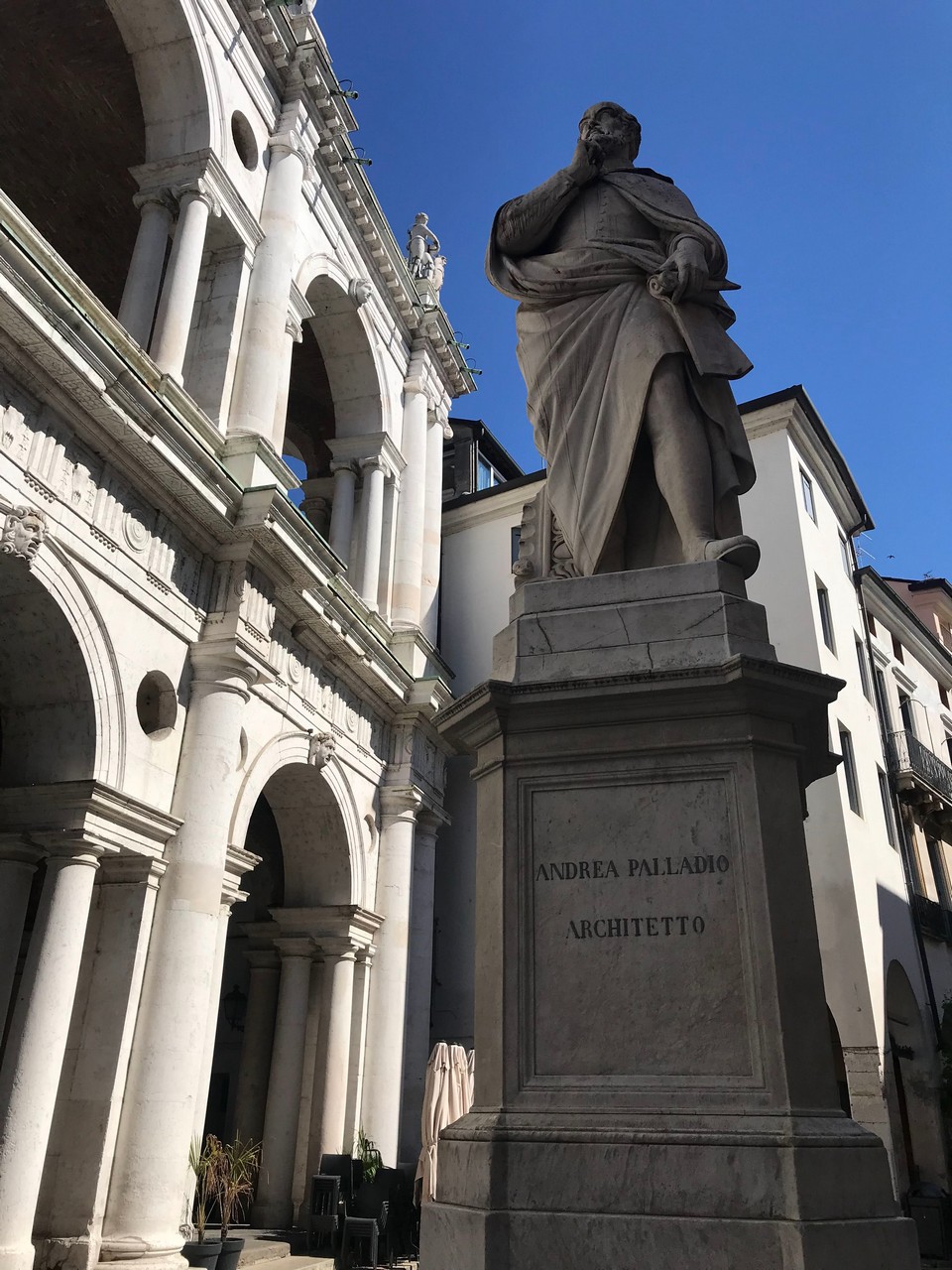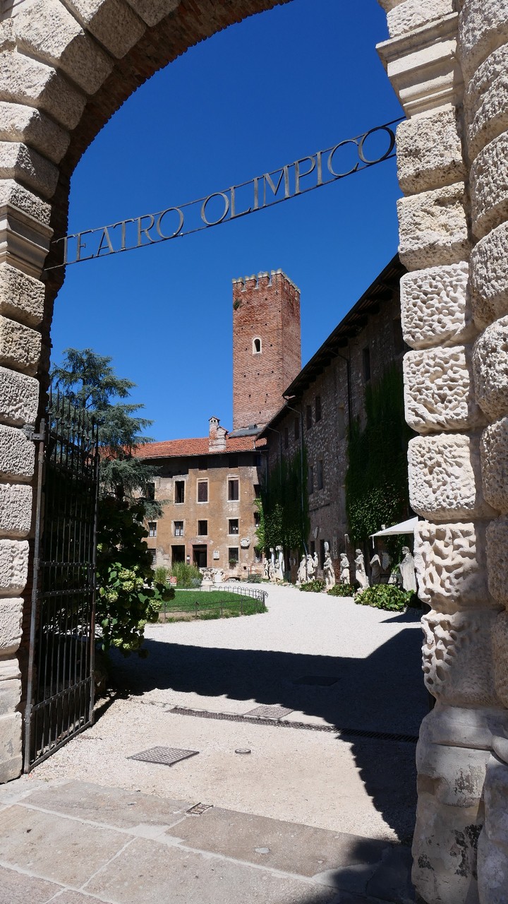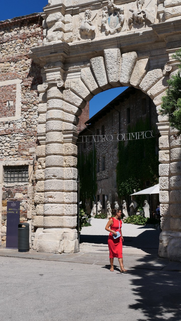 On pose le camping-car à l’aera di sosta Via Bassano. Près de la gare. Dans les 8 € il y a compris les tickets de bus aller-retour pour la visite. L’arrêt du bus 10 est juste devant. On descend directement devant le Teatro Olimpico. Toute la ville est consacrée aux œuvres de Palladio, architecte de la Renaissance italienne. Son œuvre a eu une influence considérable et inspire encore aujourd’hui de nombreux architectes.